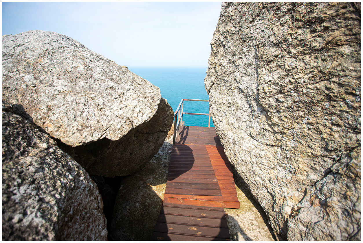 ▽ 데크가 있어서 바위 사이를 통과해 보니 전망대가 있다. 깨스층만 없어도 북, 북서쪽으로 청산도나 소안도가 보였을텐데 망망대해로 아무것도 보이질 않는다.