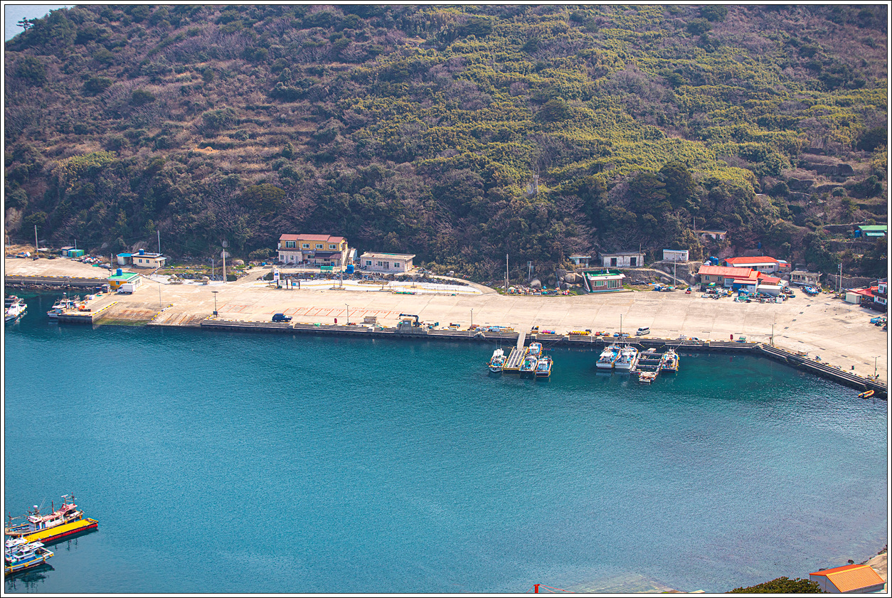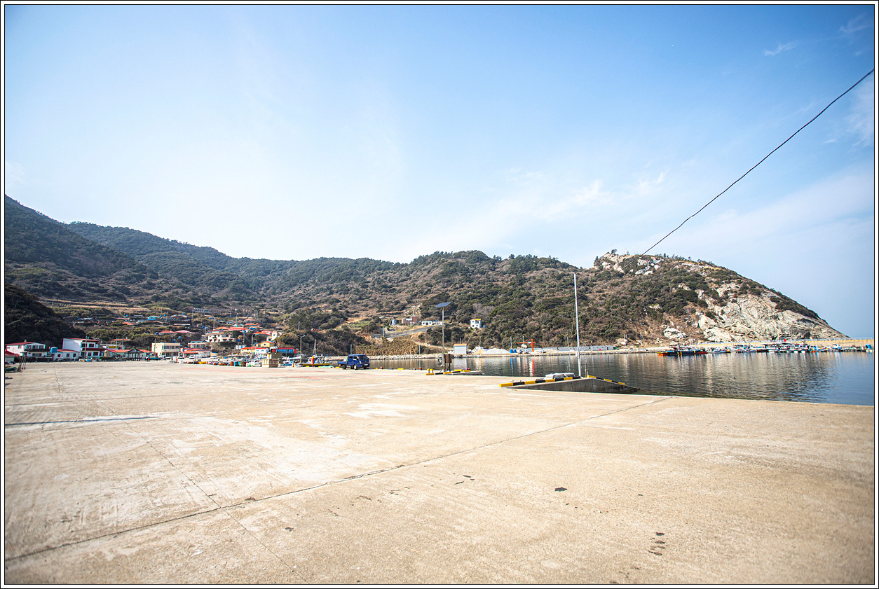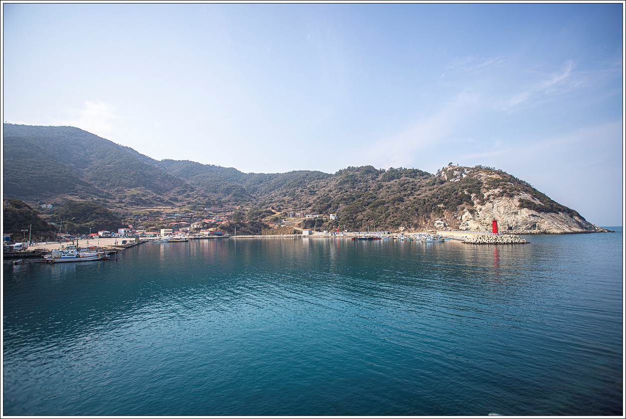 ▽ 청산도항에서 한시간 이십여분 걸려 여서도항에 도착했다. 작은 섬에 이렇게 큰 부두?가 조성되어 있다니 놀랍다. 아무튼 다른 섬과 달리 지저분해 보이는 어구들이 널려있지 않아서 깔끔해 보인다.