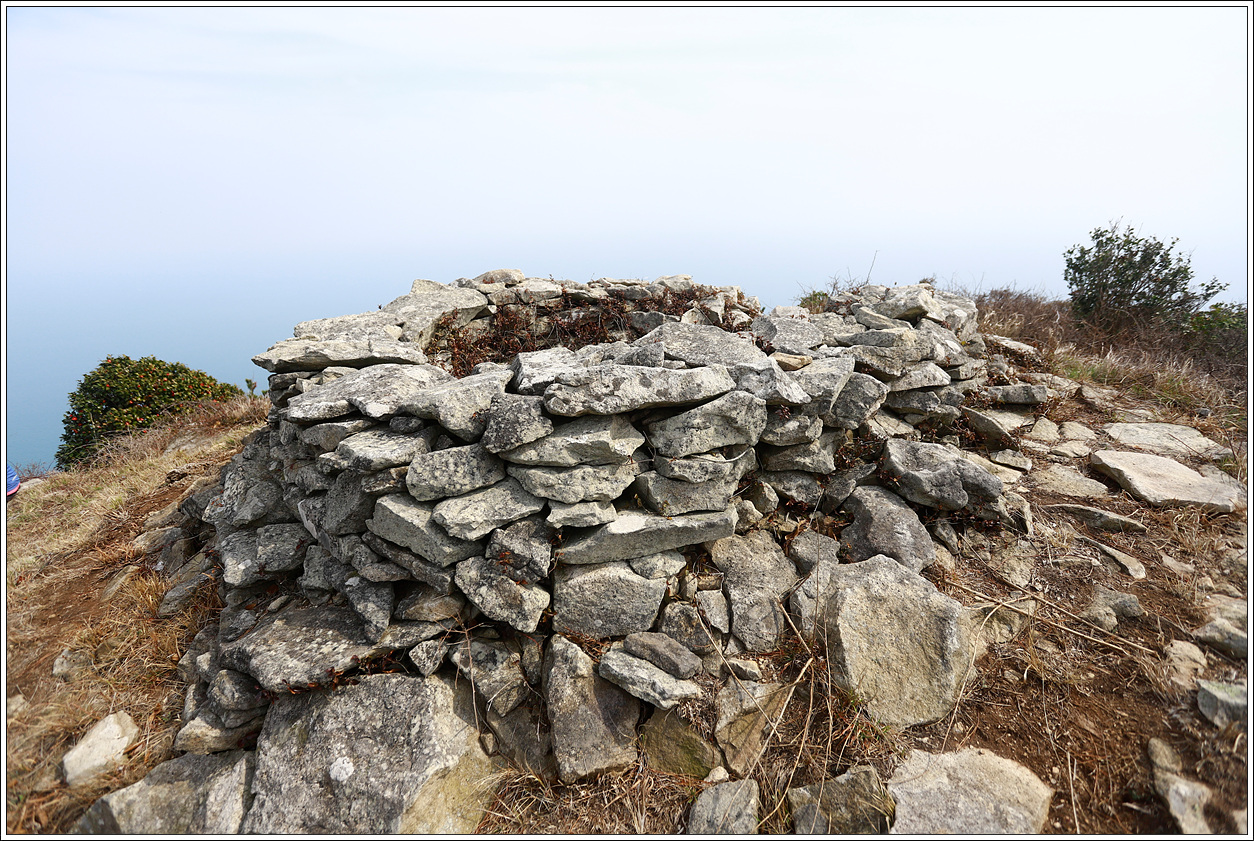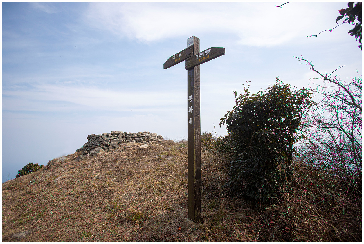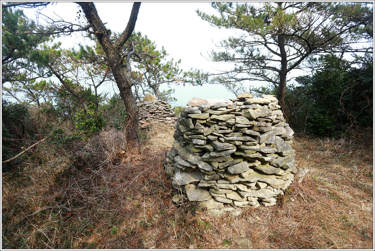 ▽ 봉화대는 규모가 그리 커 보이지 않는 흔적으로 남아 있다. 이곳에서 시정 거리만 좋았다면 멀리 제주도 한라산을 조망해 볼 수 있었을텐데 하는 아쉬움이 있다.