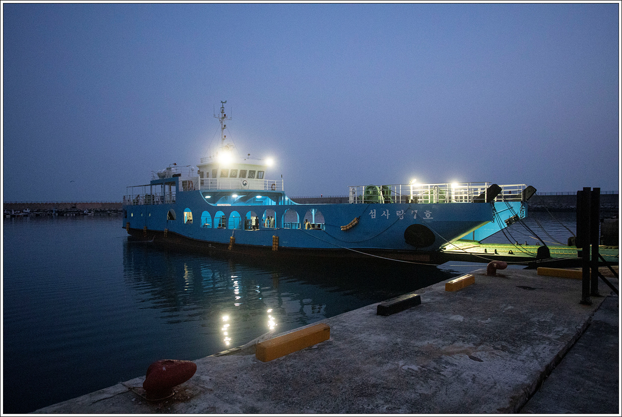 ▽ 완도항여객터미널에 04:30에 도착하여 문을 연 식당을 겨우 찾아 아침 식사를 한다. 07시에 배가 출항하여 여서도로 바로 가면 좋겠지만 청산도에 가서 40여분을 기다렸다가 여서도로 가는 배를 다시 갈아타야 하는 번거로움이 있다.