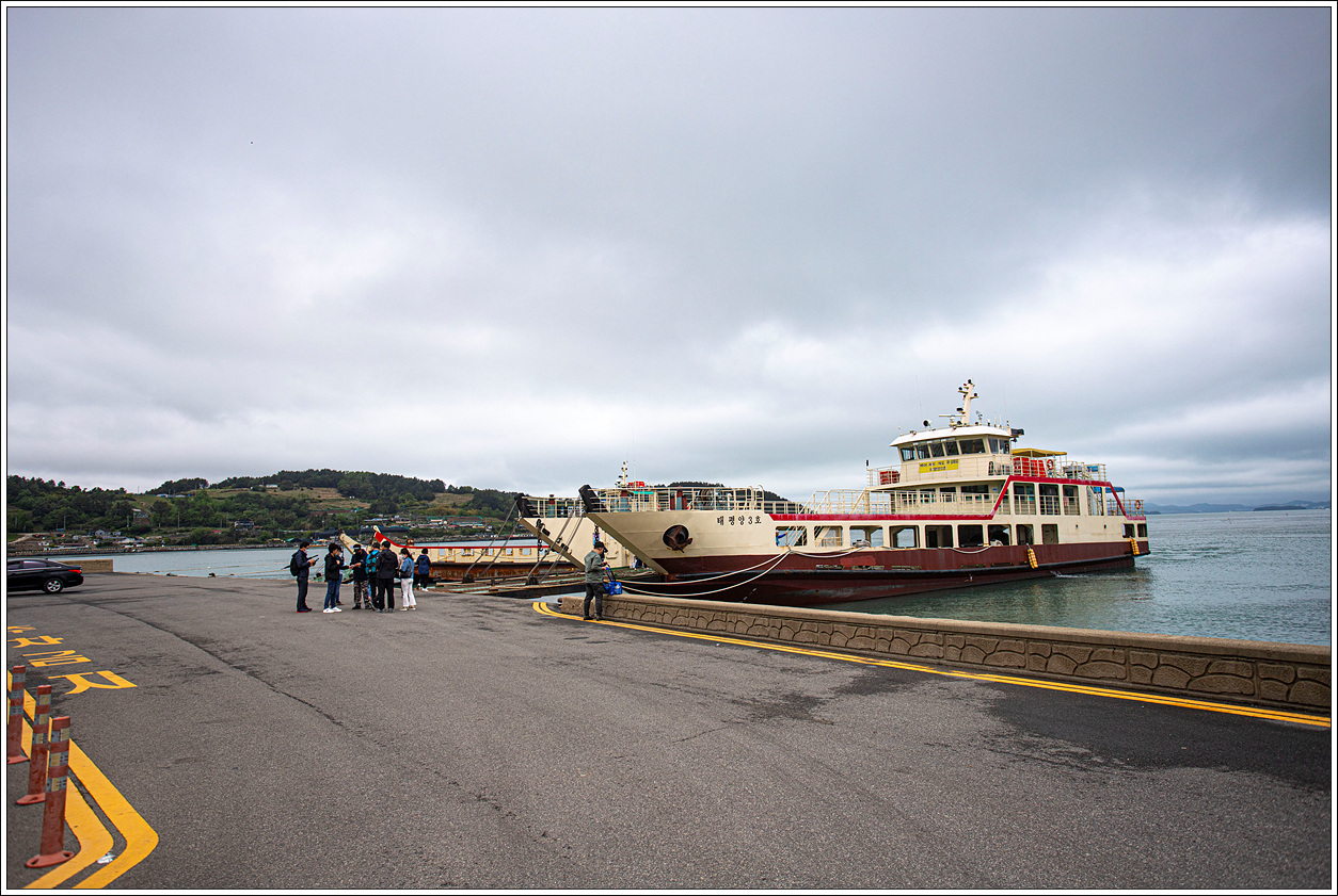 ▽ 개도로 가기위해 승선하는 승객과 차도선이 대기 중에 있다.