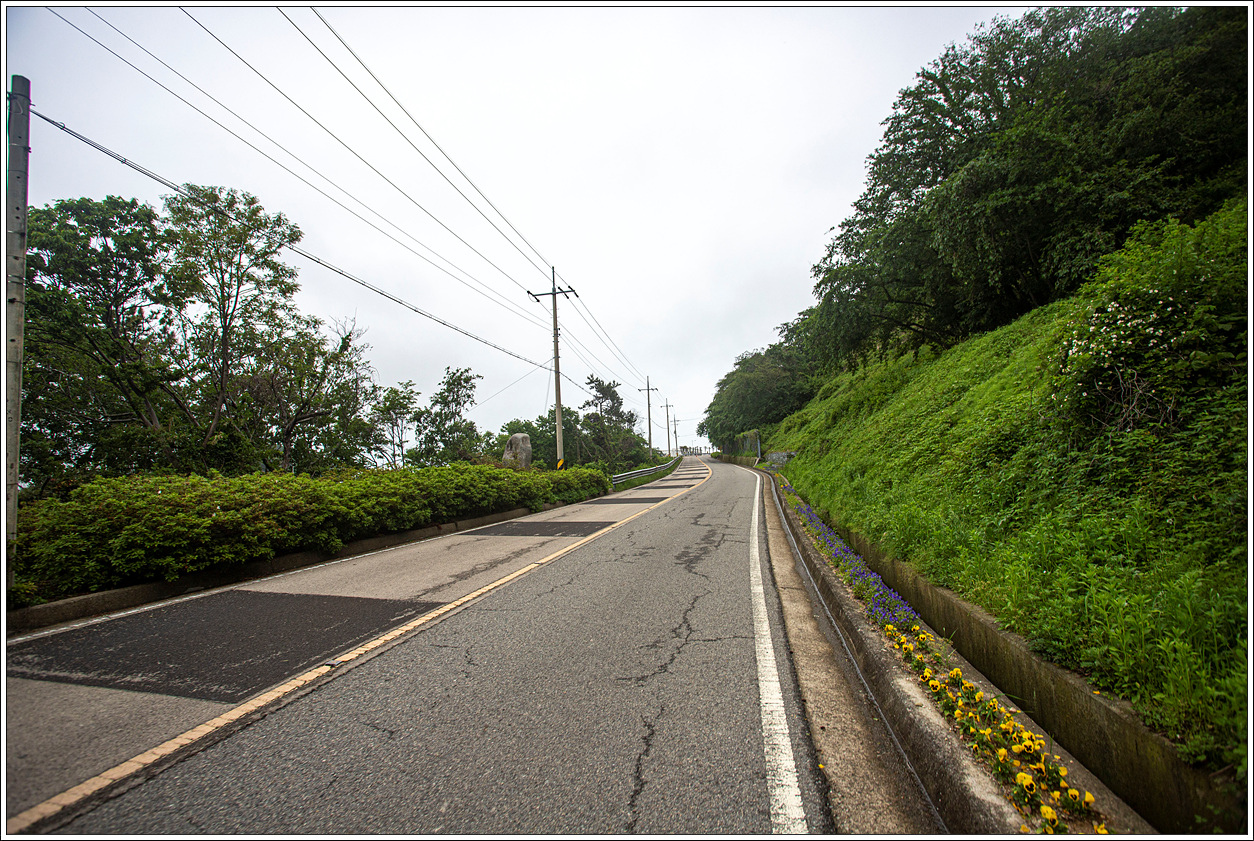 ▽ 이 언덕을 넘어서면 백야대교와 만나는 삼거리이다. 차량이 그리 많지 않아 이러한 도로를 걷는 것도 그리 위험하지는 않다.