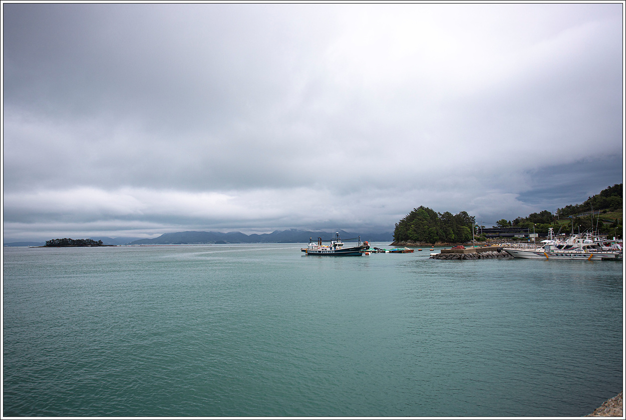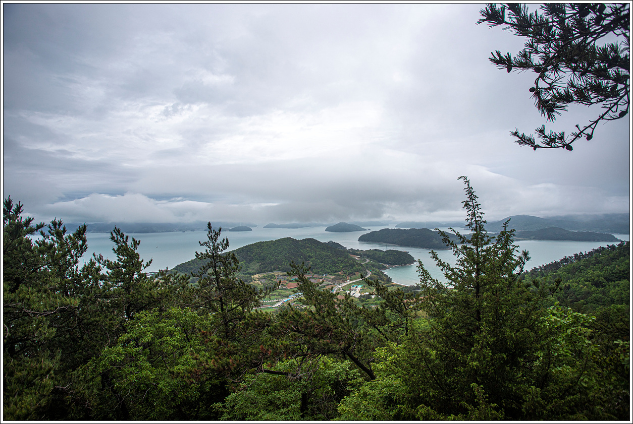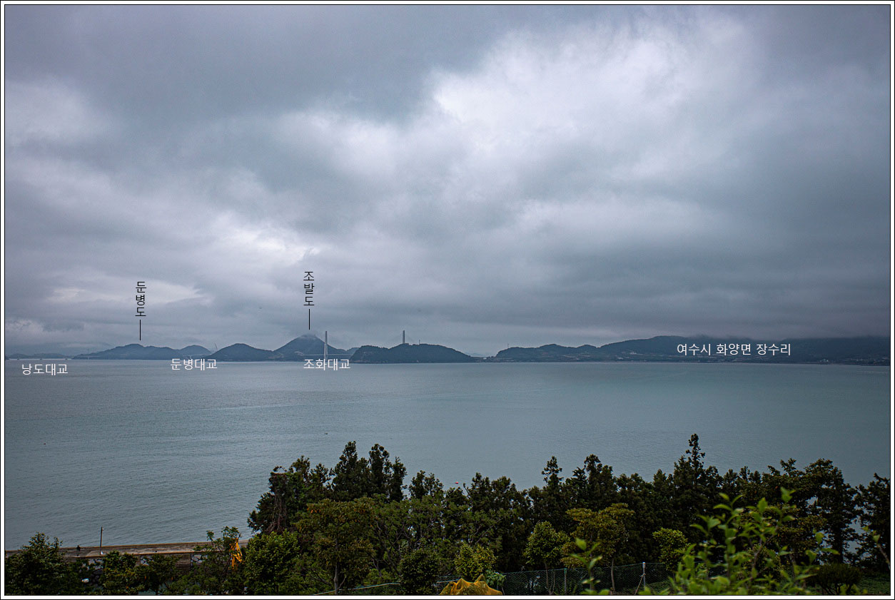 ▽ 금방이라도 비가 올 듯 찌푸린 날씨다. 멀리 돌산도가 구름층에 가려져 있다.