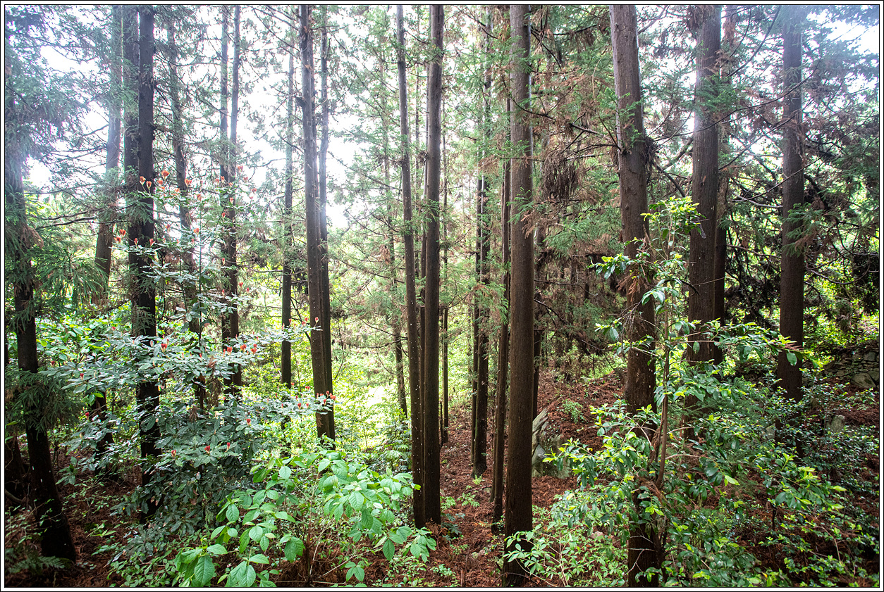 ▽ 쭉쭉 곧게 뻗은 편백나무 숲이 눈길을 끈다.