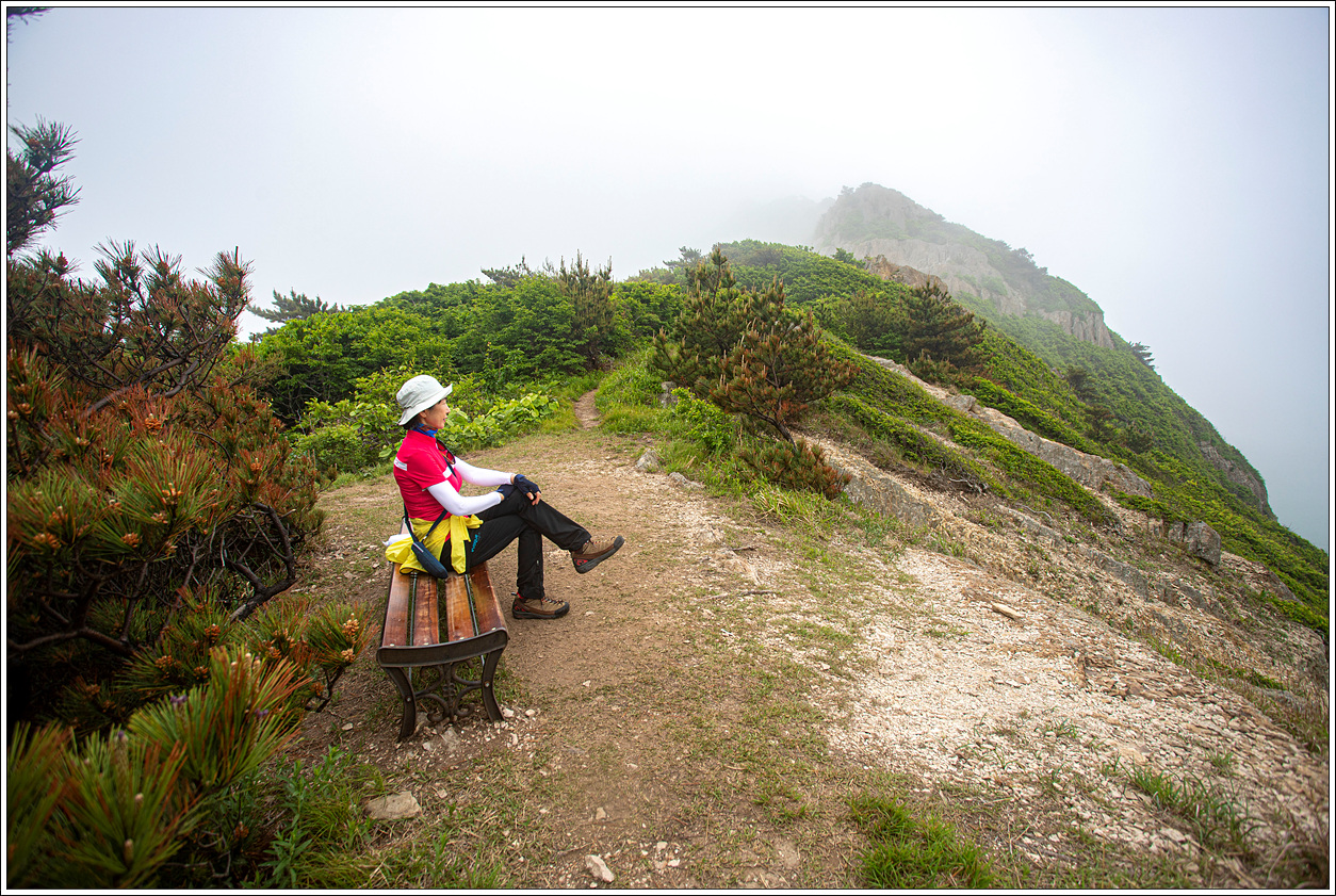 ▽ 정상 등로에서 약간 빗나간 곳으로 가보면 첫번째 조망처가 나오고 이곳에서 바라 본 조망대 방향의 풍경이 멋지다. 역시 안개가 살짝 걷힐 때 담아 본 풍경이다.