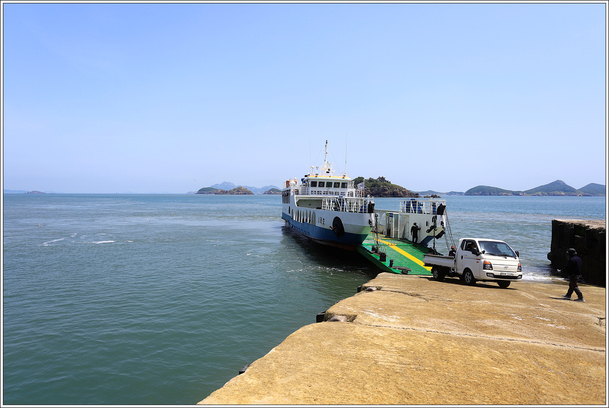 ▽ 주변 섬 풍경을 감상하고 있는 동안에 어느새 백아도선착장에 도착, 하선하는 사람은 아내와 나, 둘 뿐이다. 나머지 승선해 있는 분들은 모두 굴업도를 가는 모양이다.