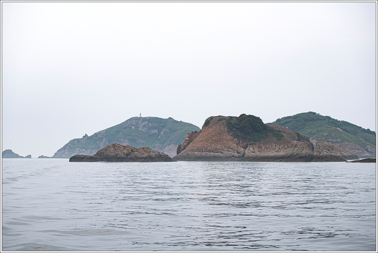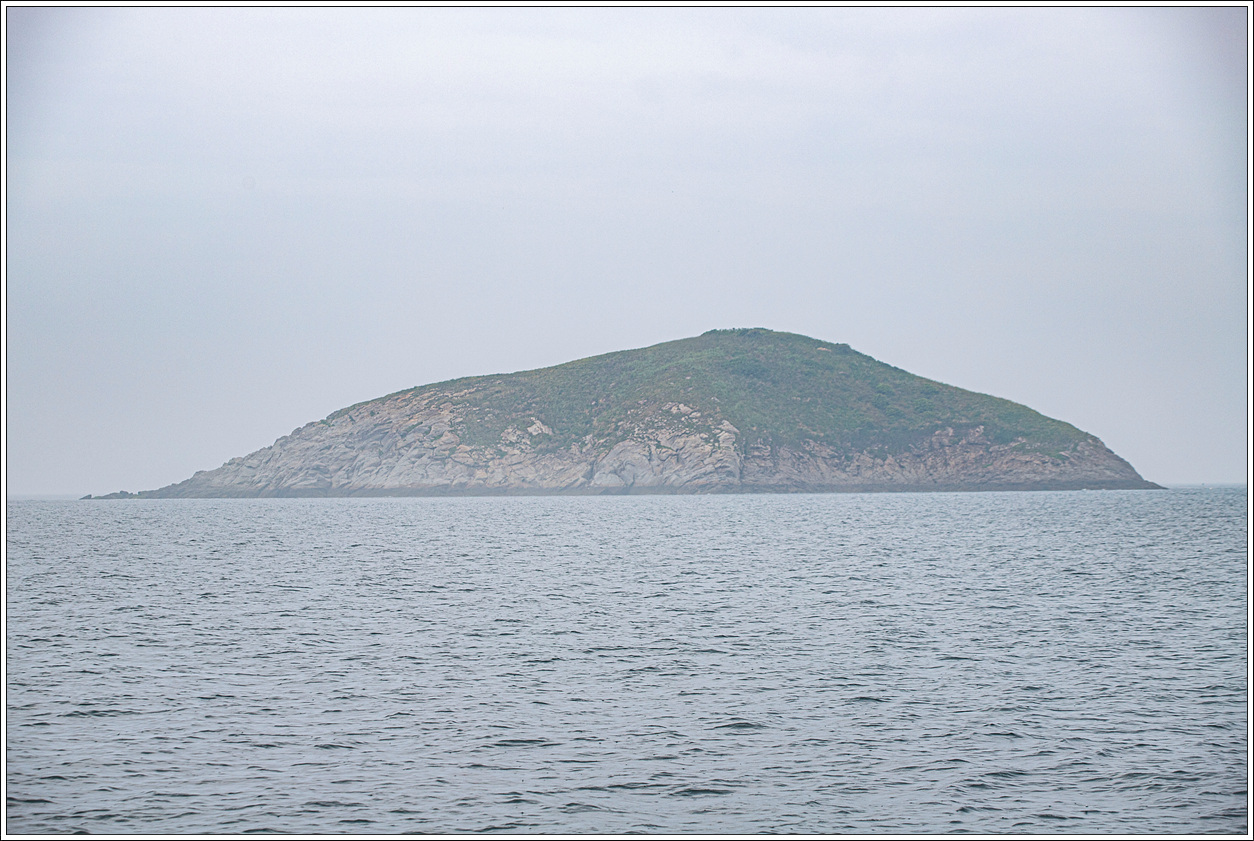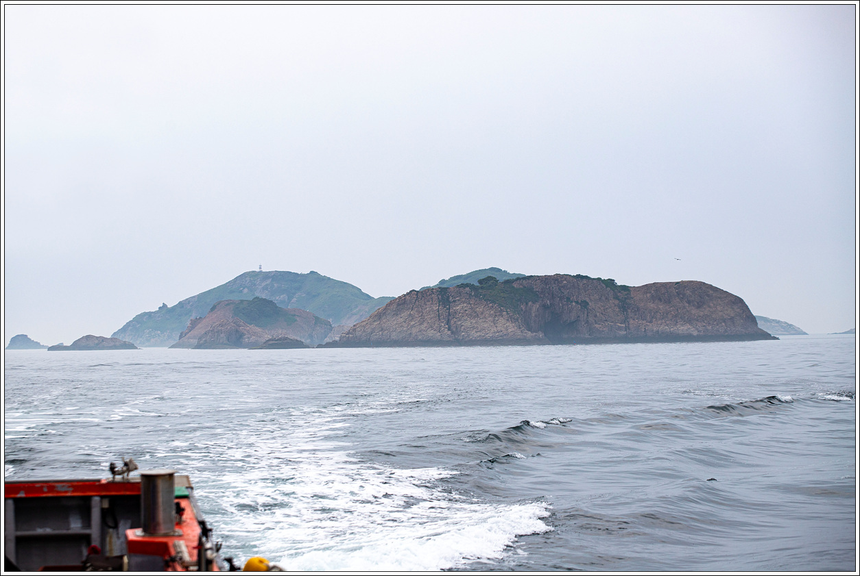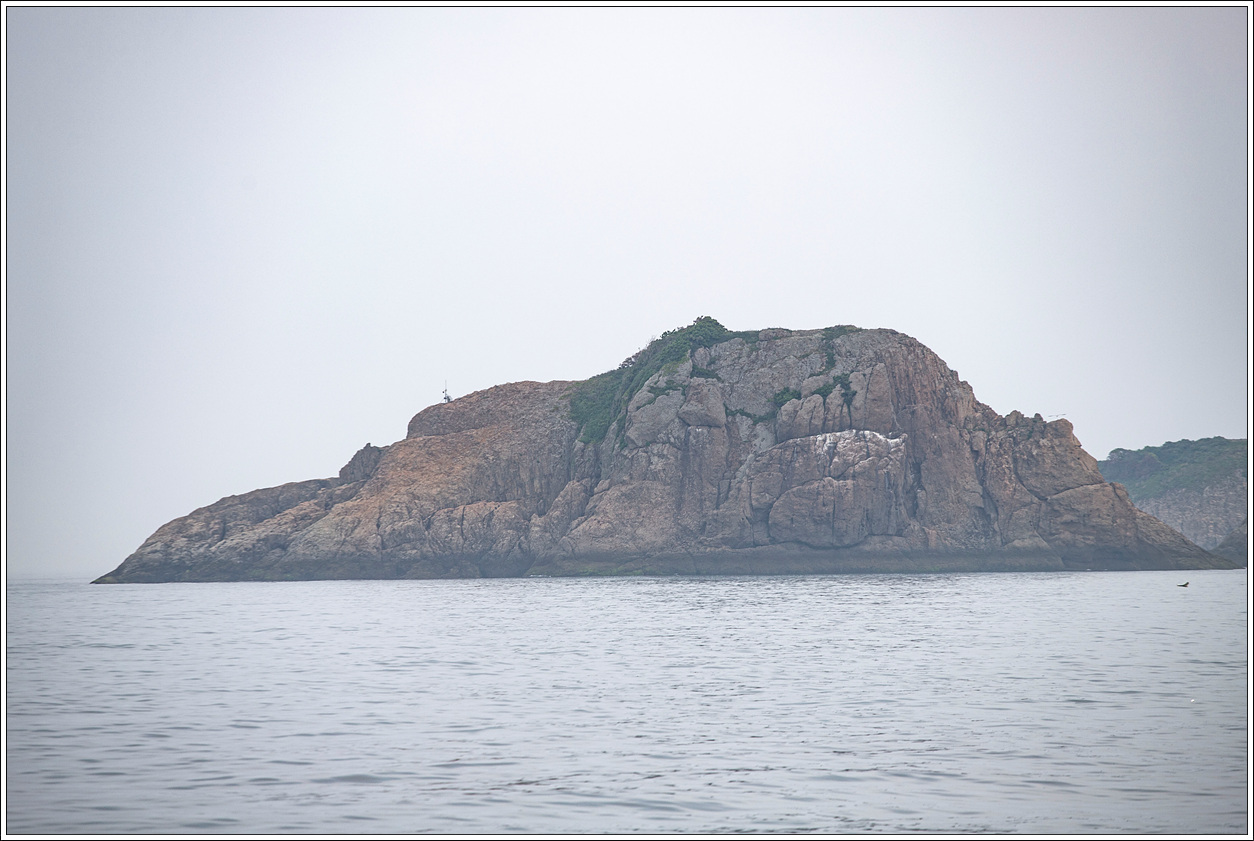 ▽ 낚시배는 전 속력으로 똥섬을 지나고 멀리 등대섬을 배경으로 담아 본다.