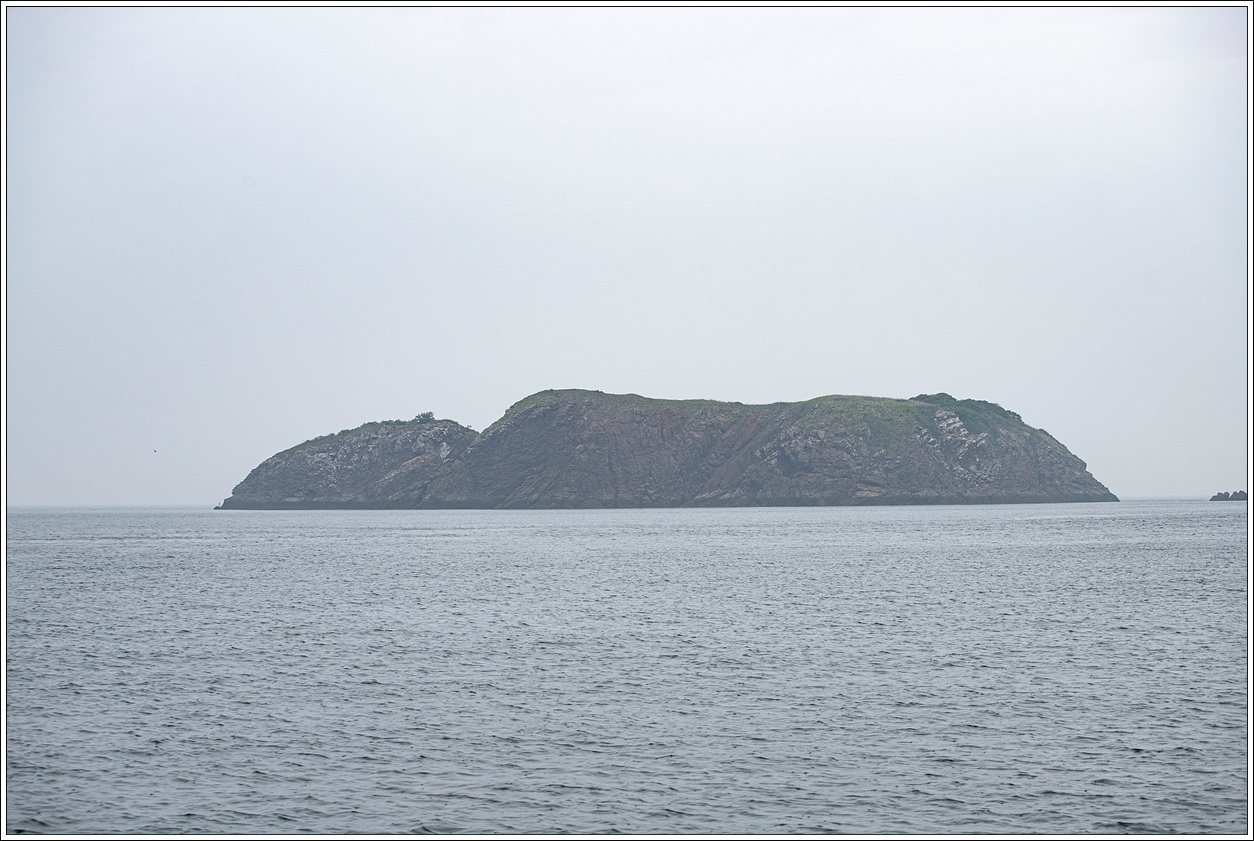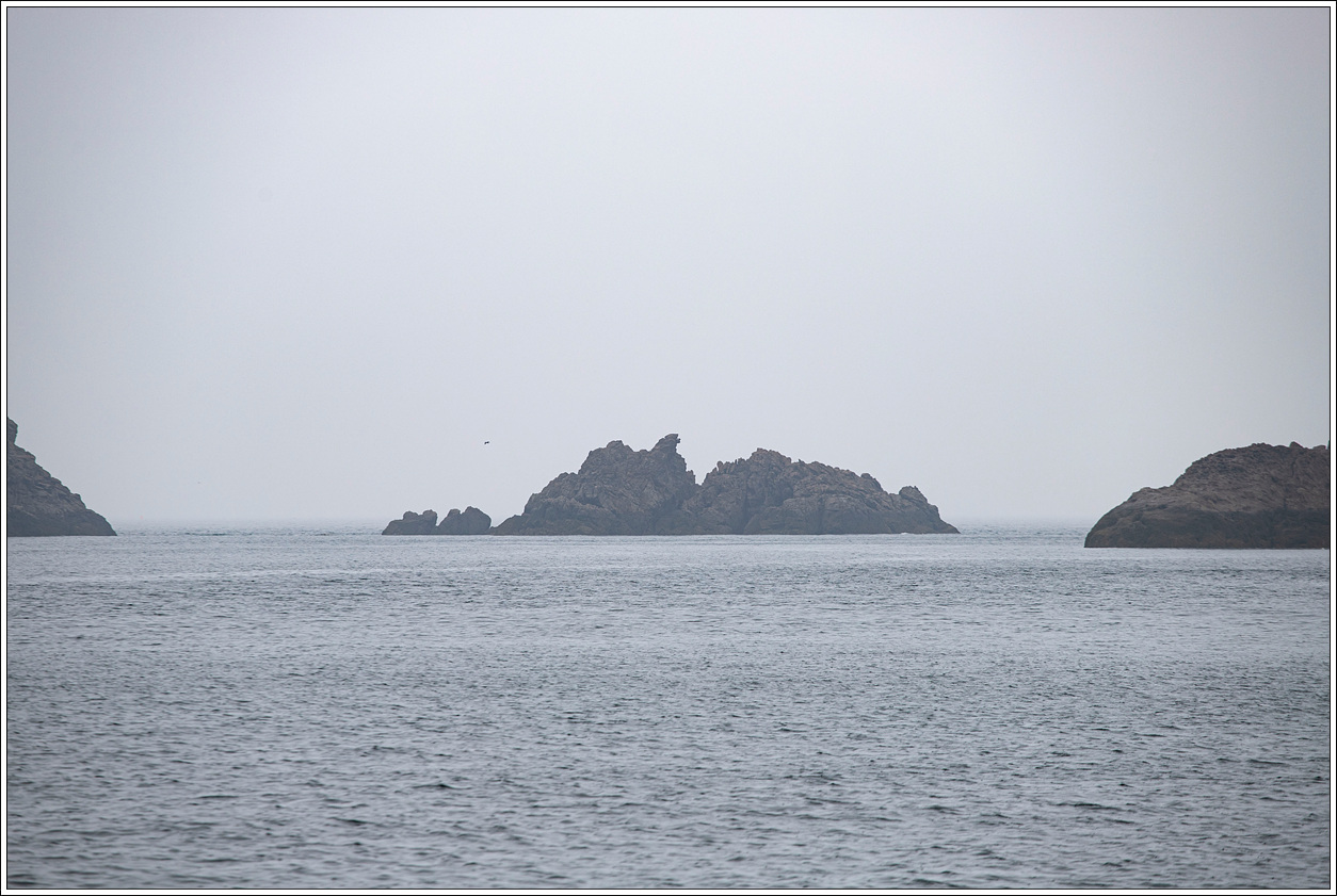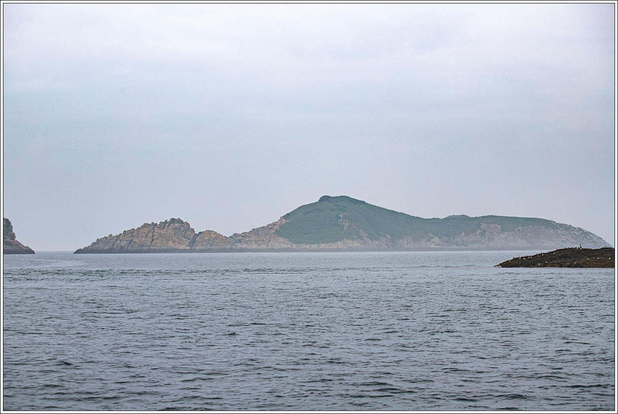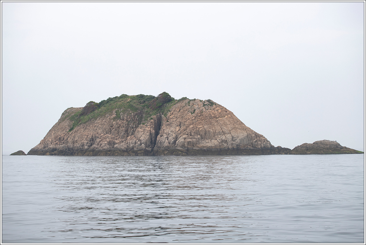▽ 낚시배는 전 속력으로 똥섬을 지나고 멀리 등대섬을 배경으로 담아 본다.