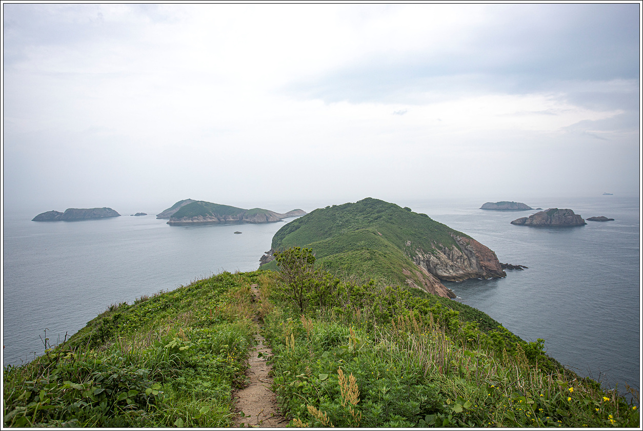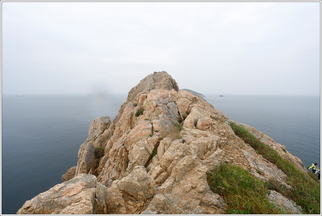 ▽ 정상 거의 다 올라 온 지점에서 동쪽 방향으로 담아 본 풍경으로 왼쪽 멀리 사자섬, 갈매기여, 쌍섬, 오른쪽으로 멀리 똥섬과 가까이 소금섬이 그림같이 다가 온다. 저쪽 끝까지 갔다 오는 줄 알았는데 정상의 등대까지만 올랐다가 간식을 먹고 바로 하산하여 아쉽다. 위험성이 있어서 가지말라고 하는 것인데 그리 위험해 보이지는 않고 30분만 더 주어지면 충분히 왕복할 거리이다.