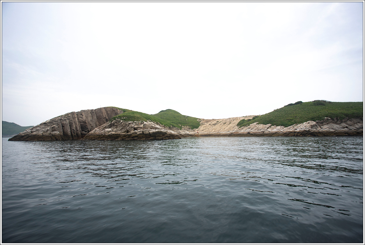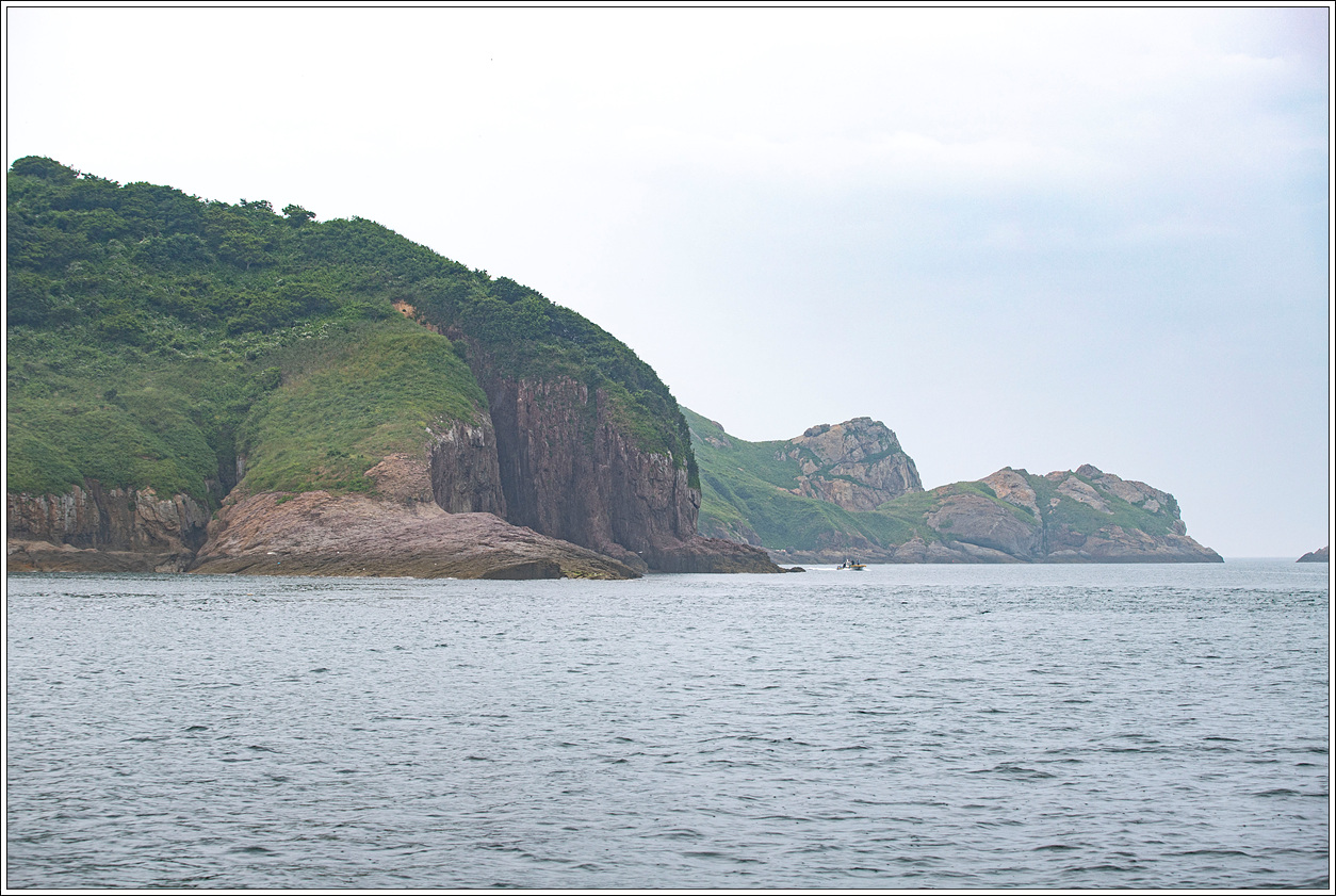 ▽ 돌아가는 길에 병풍도를 시계 반대방향으로 돌아 선상투어를 하기로 해서 뱃머리를 바로 야미도항으로 향하지 않고 등대섬 북쪽 방향의 병풍도로 향하면서 반대편의 쌍섬을 담아봤다. 왼쪽이 작은쌍섬, 오른쪽이 큰쌍섬이다.