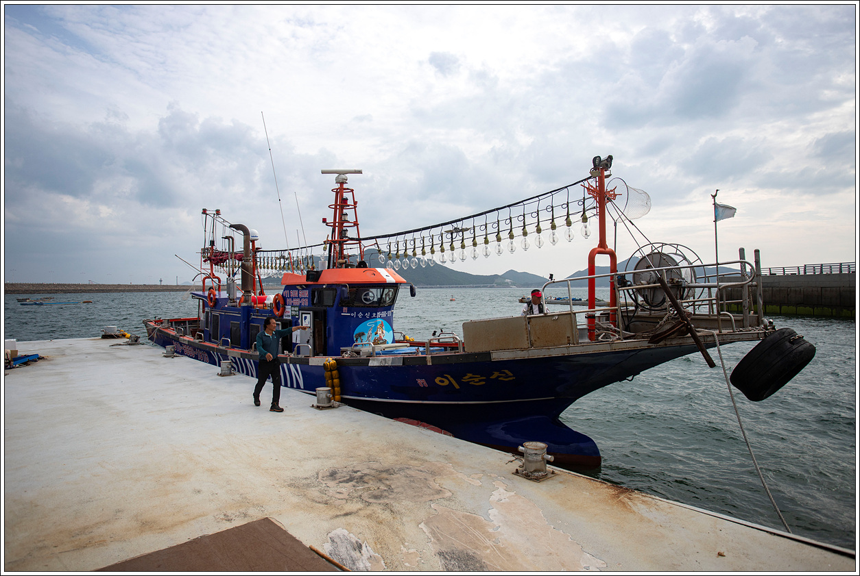 ▽ 우리가 탈 배는 대낮에 배 위에 무수히 달려있는 전등을 보니 야간에 야행성인 오징어나 갈치낚시를 할 때 사용하는 것인데 내가 낚시를 하러 온 것이 아닌가 착각이 들만큼 전형적인 낚시배다.