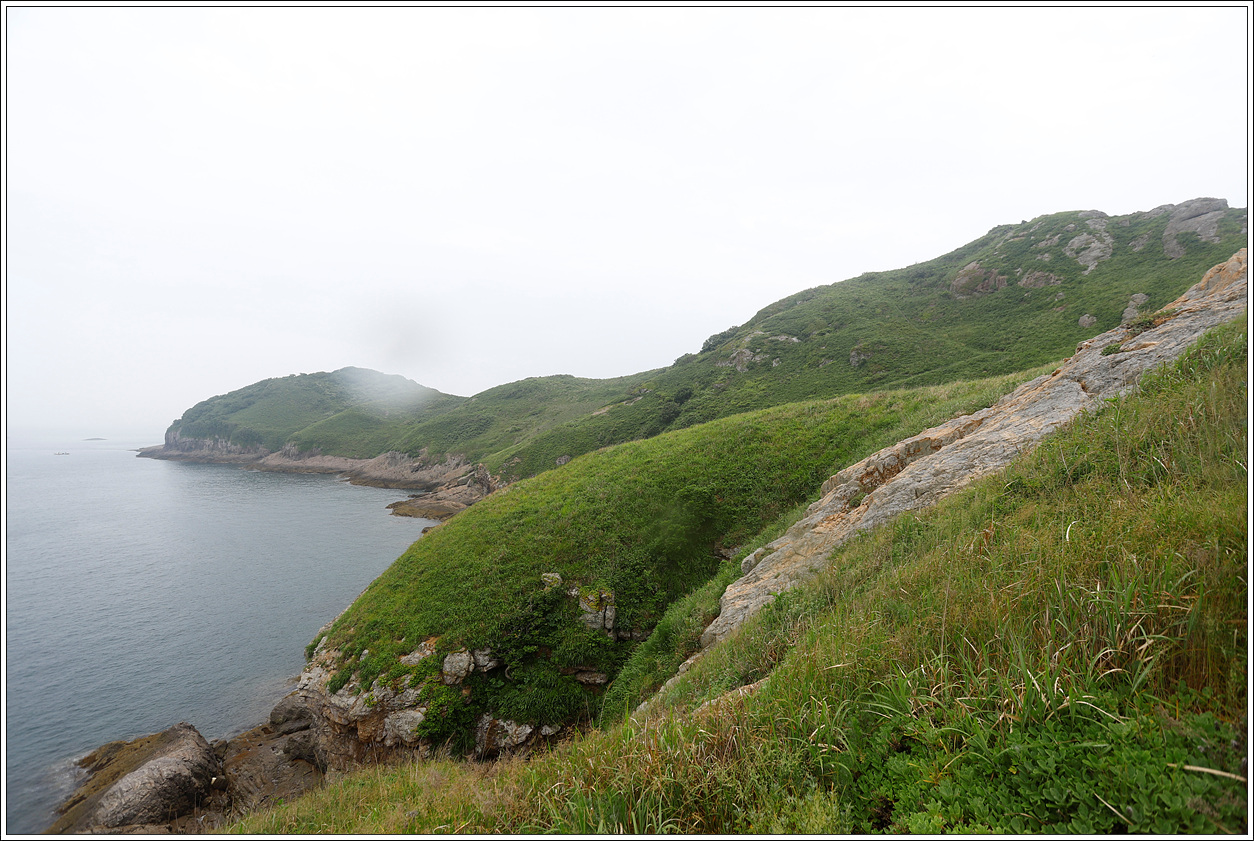 ▽ 주변에는 갯기름나물(이명: 방풍나물)과 산달래가 지천이다. 그러나 영광의 낙월도 등에서 봤듯이 섬마다 칡덩굴이 생태계를 위협할 정도로 우거져 이 작은 섬도 수년이 지나면 칡덩굴로 온통 덮어질 것이 염려된다.