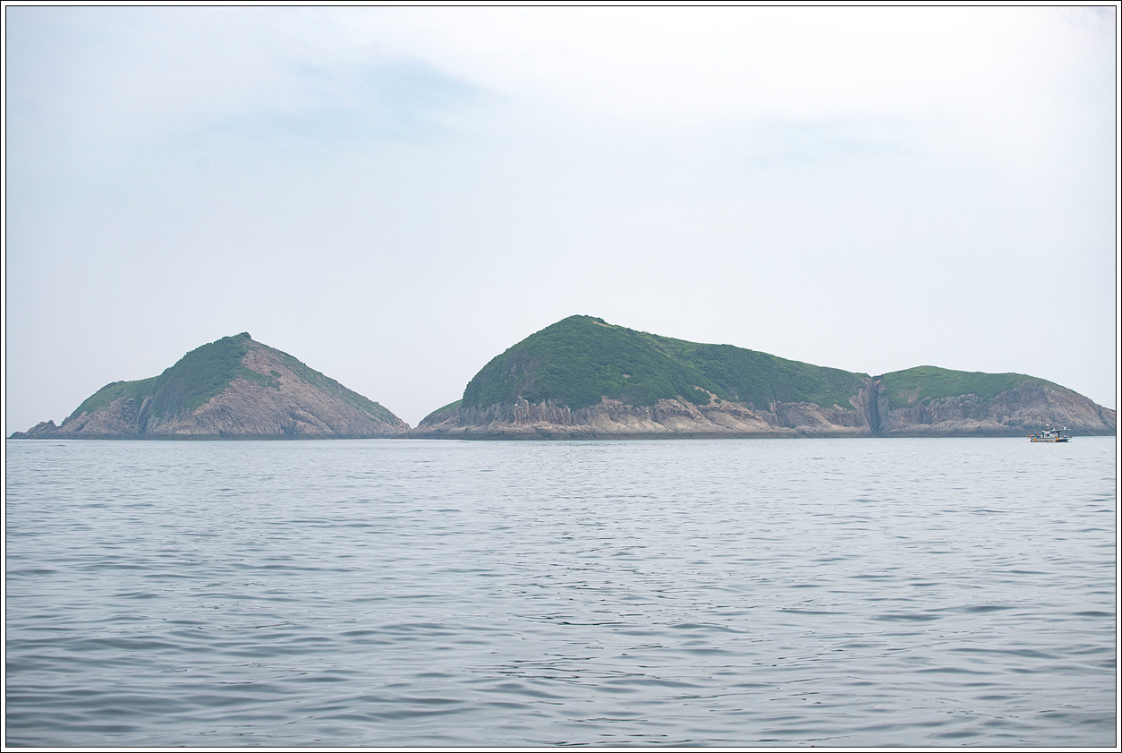 ▽ 얼른 배 반대편으로 가서 쌍섬을 담았는데 왼쪽이 큰쌍섬, 오른쪽이 작은쌍섬이다.