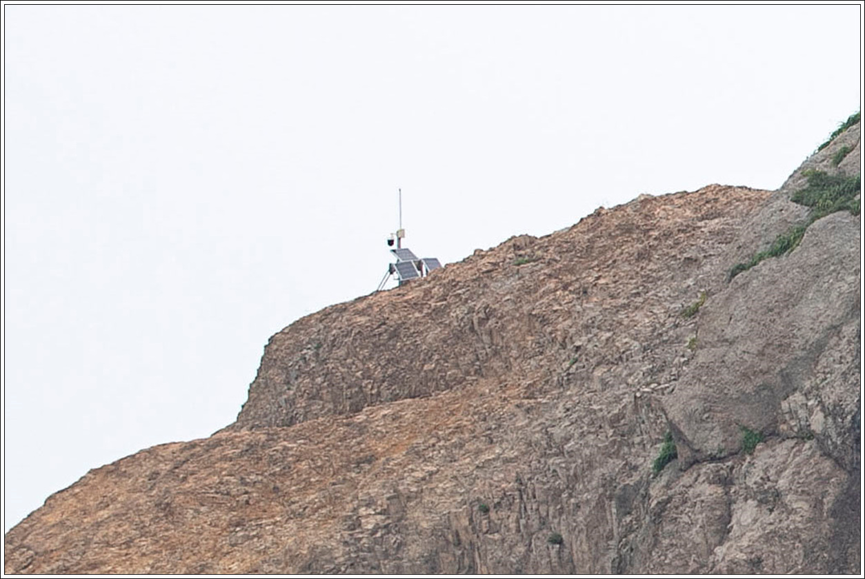 ▽ 소형의 태양열전지판이 설치되어 있고 감시카메라도 보인다. 특정도서로 지정되어 생태를 관찰할 목적으로 설치되어 있을 것으로 보인다.