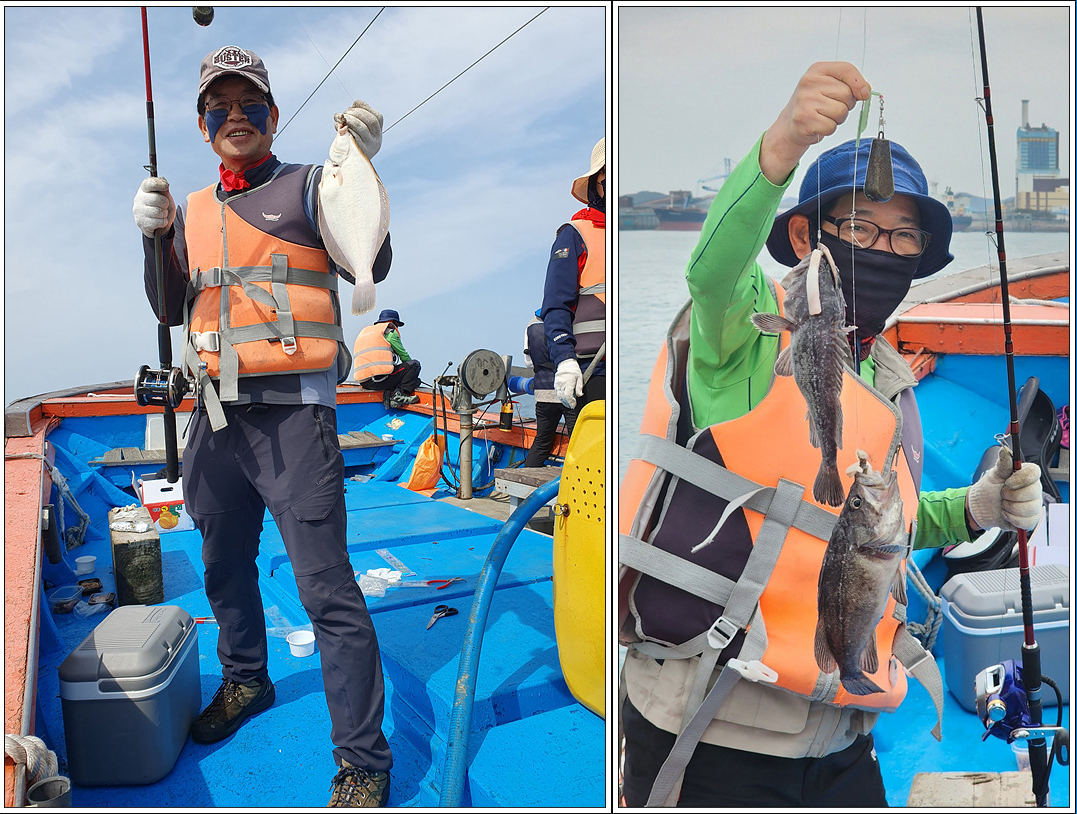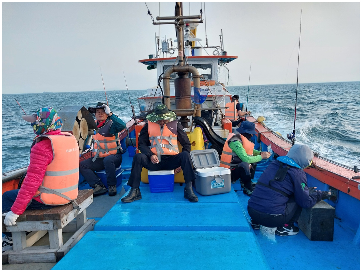 평소 낚시배를 종종 탄다는 여동생 부부는 전동릴대를 휴대하고 나머지는 낚시대를 대여했는데 한대당 1만원으로 어느 배든 기본이다. 물론, 채비인 낚시 추 및 바늘, 미끼인 갯지렁이, 미꾸라지, 오징어 썰은 것은 가족들이 준비해야겠지만 선장에게 부탁하면 시중과 가격차이 없이 준비할 수 있다. 다만, 미끼는 미꾸라지만 취급하신단다.