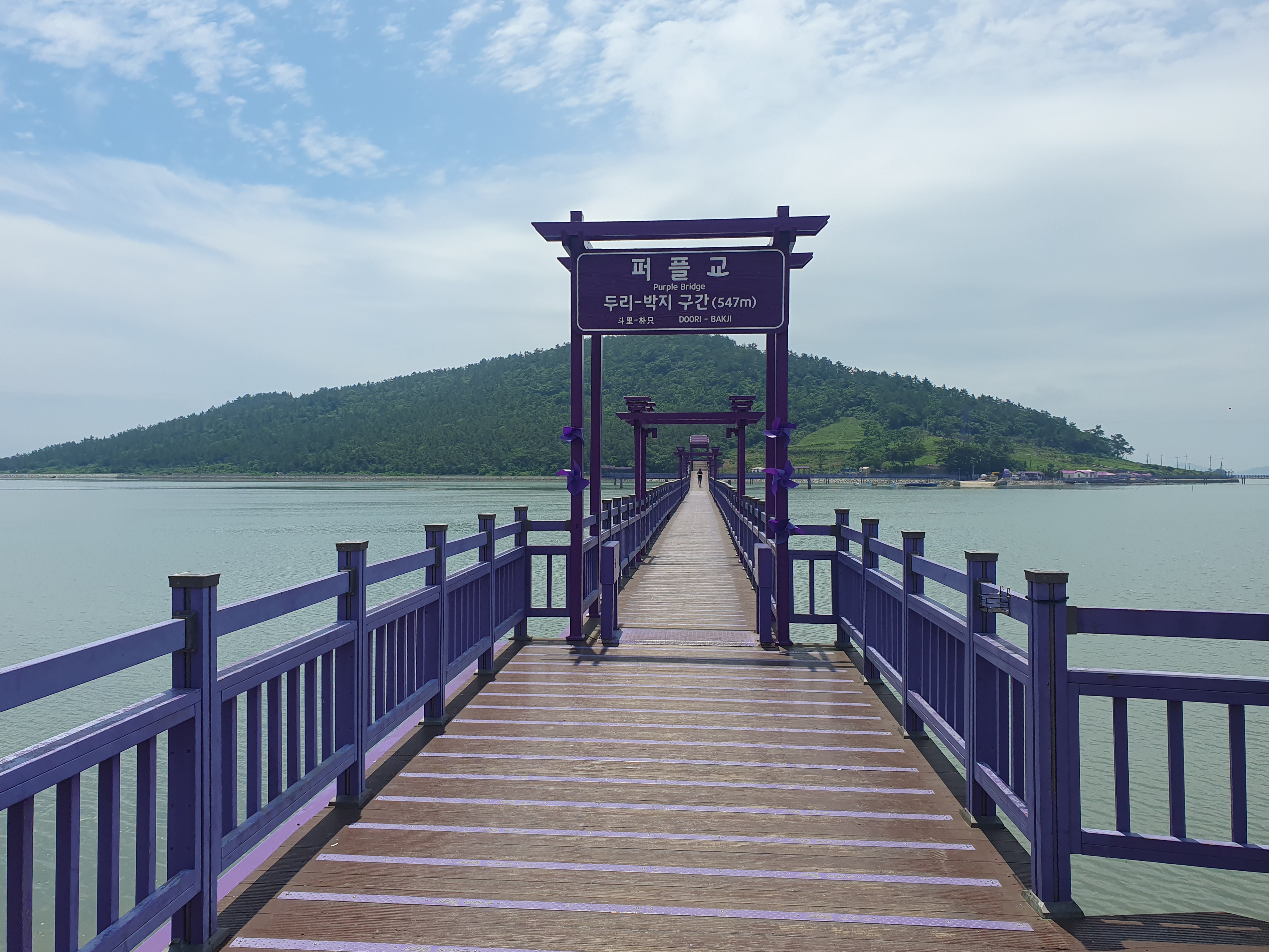한국은 물론 해외 여행객들의 큰 사랑을 받고있는 보랏빛다리(Purple교)는 평생을 박지도에서 살아온 김매금 할머니의 "두 발로 걸어서 육지로 나오고 싶다"는 소망에서 시작되었다.