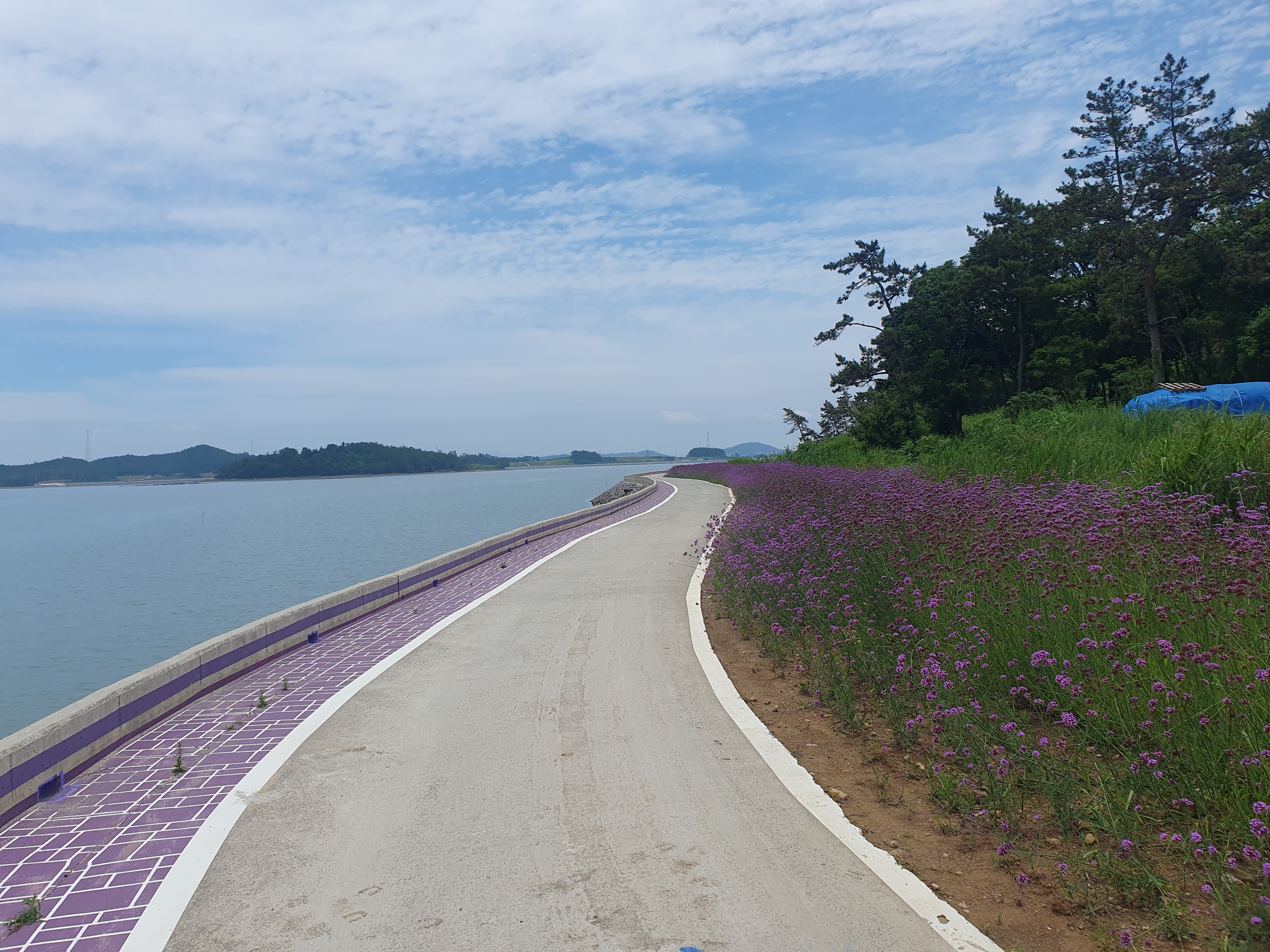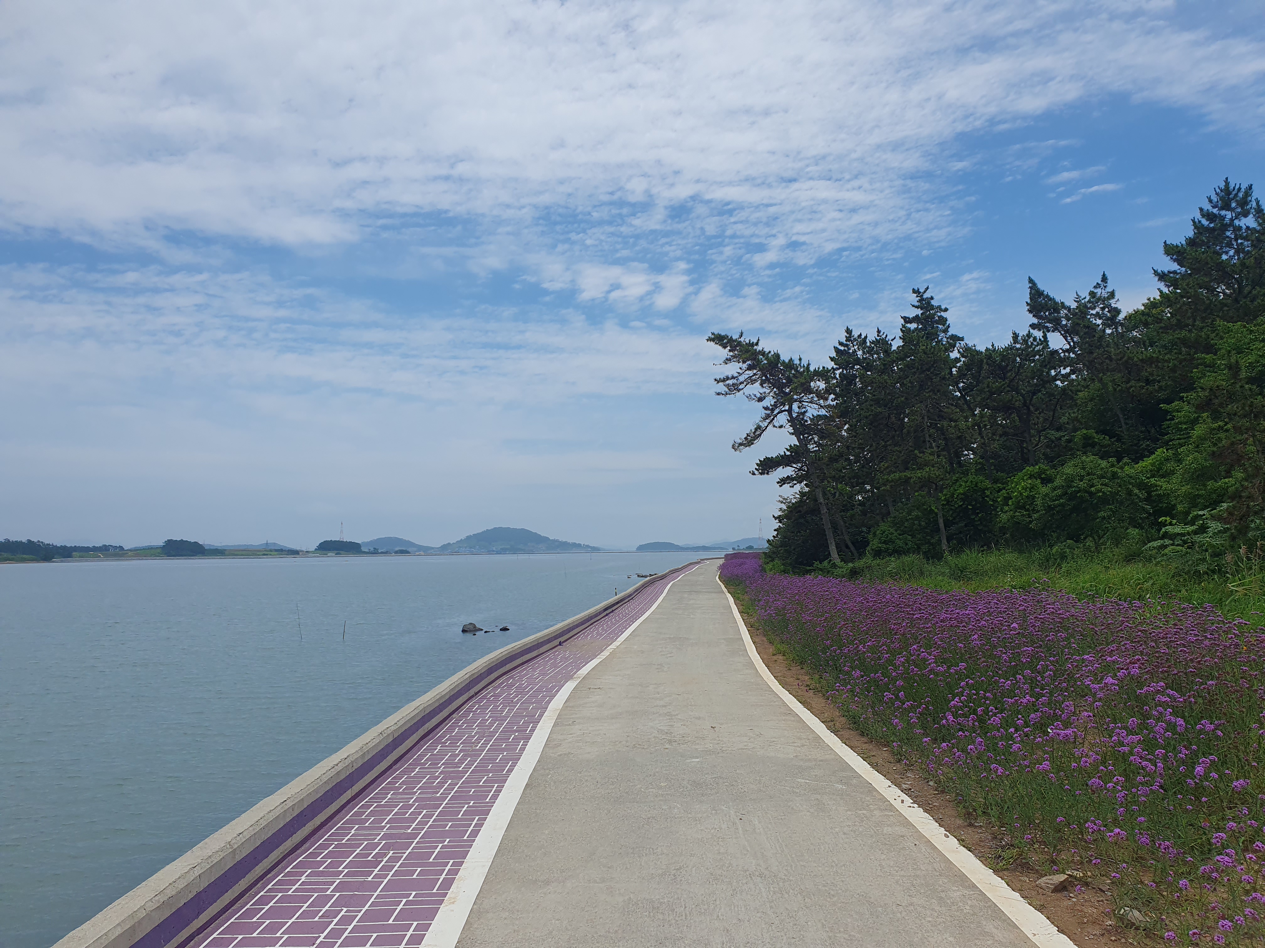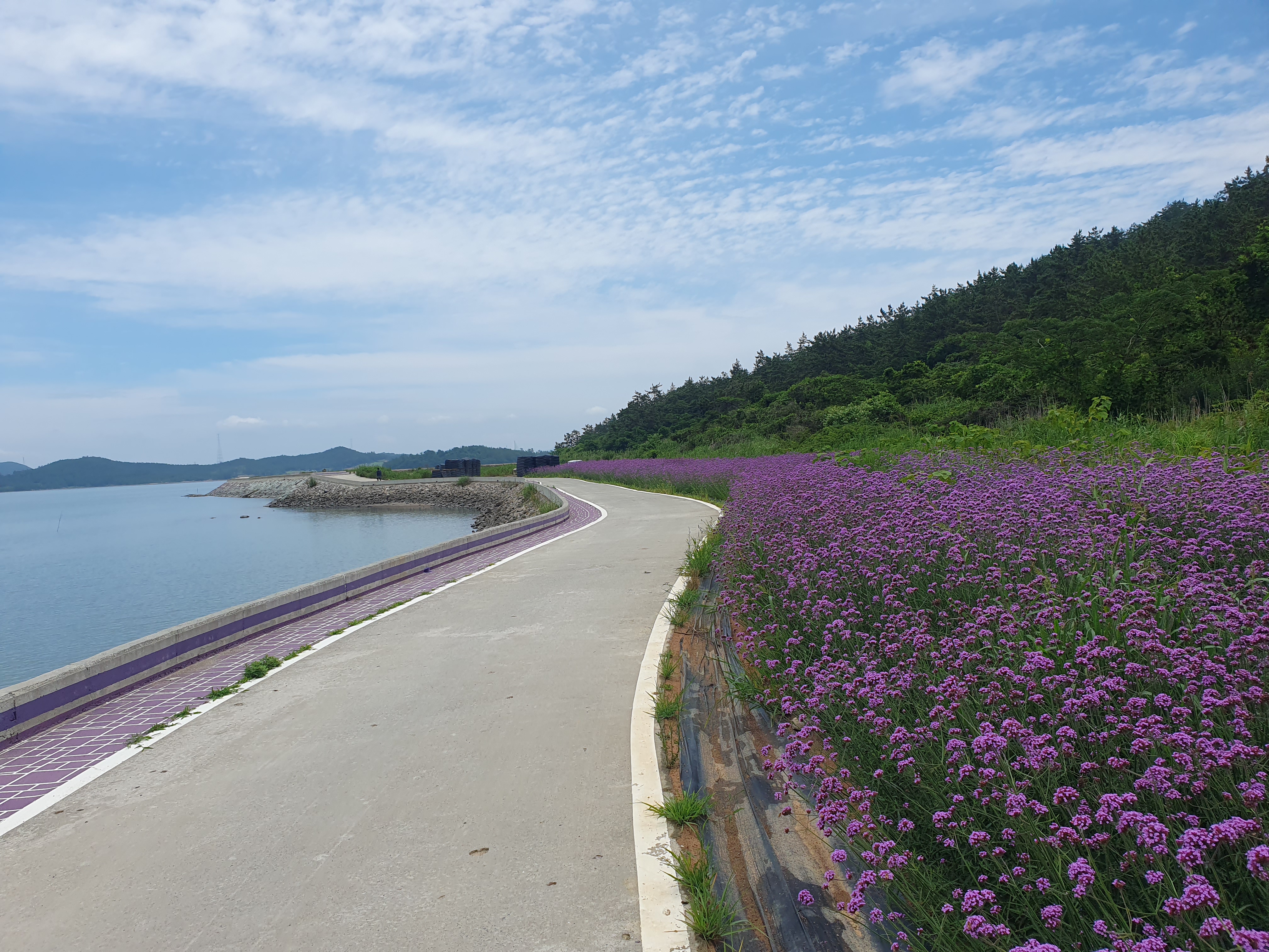 ▽ 다행히 살짝 흐려서 햇빛이 강렬하지 않고 바닷바람이 오히려 시원한 것 같아 산으로 이어지는 숲길도 있지만 버들마편초가 핀 해안 산책로를 걷기로 한다.