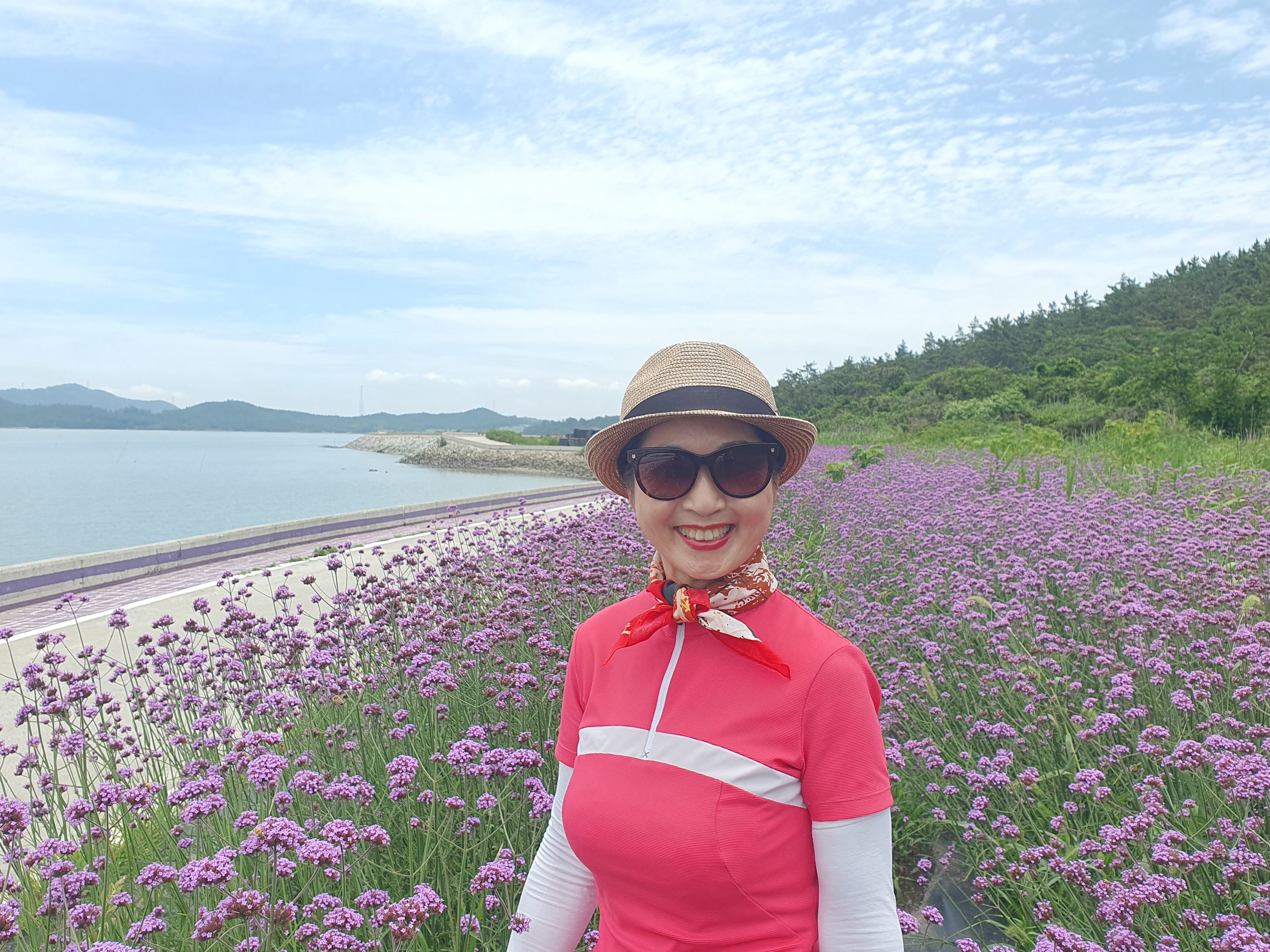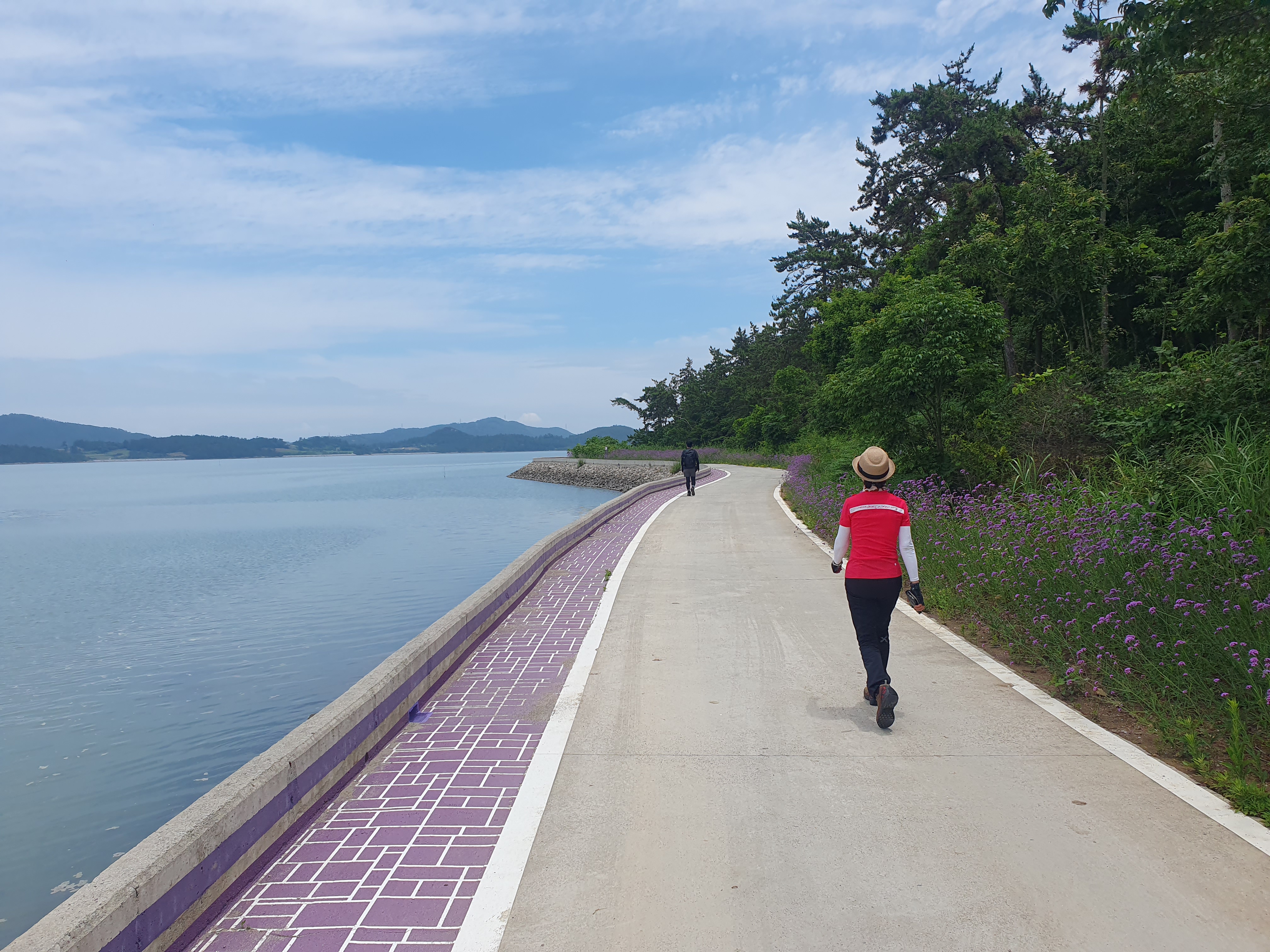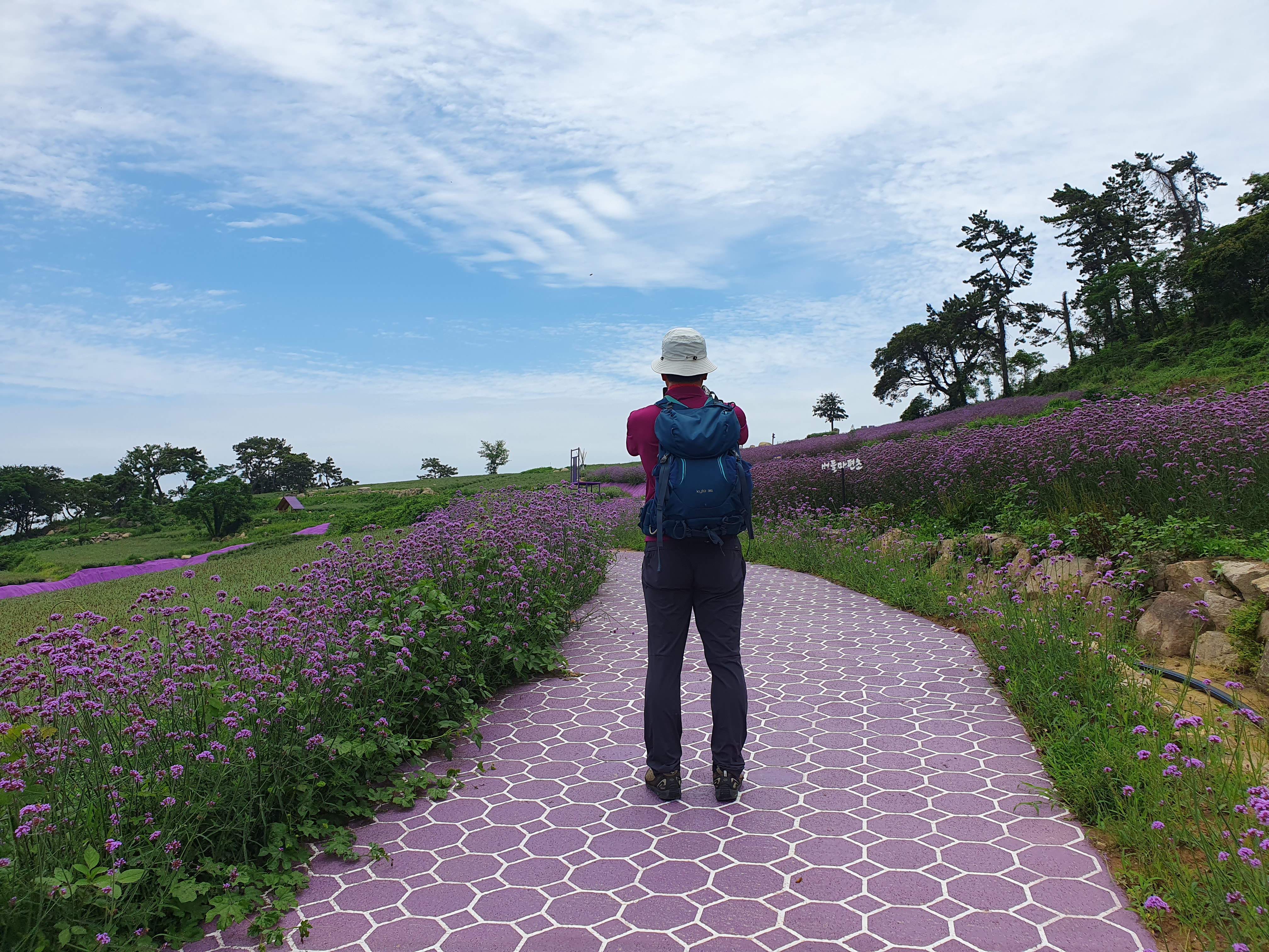 ▽ 다행히 살짝 흐려서 햇빛이 강렬하지 않고 바닷바람이 오히려 시원한 것 같아 산으로 이어지는 숲길도 있지만 버들마편초가 핀 해안 산책로를 걷기로 한다.