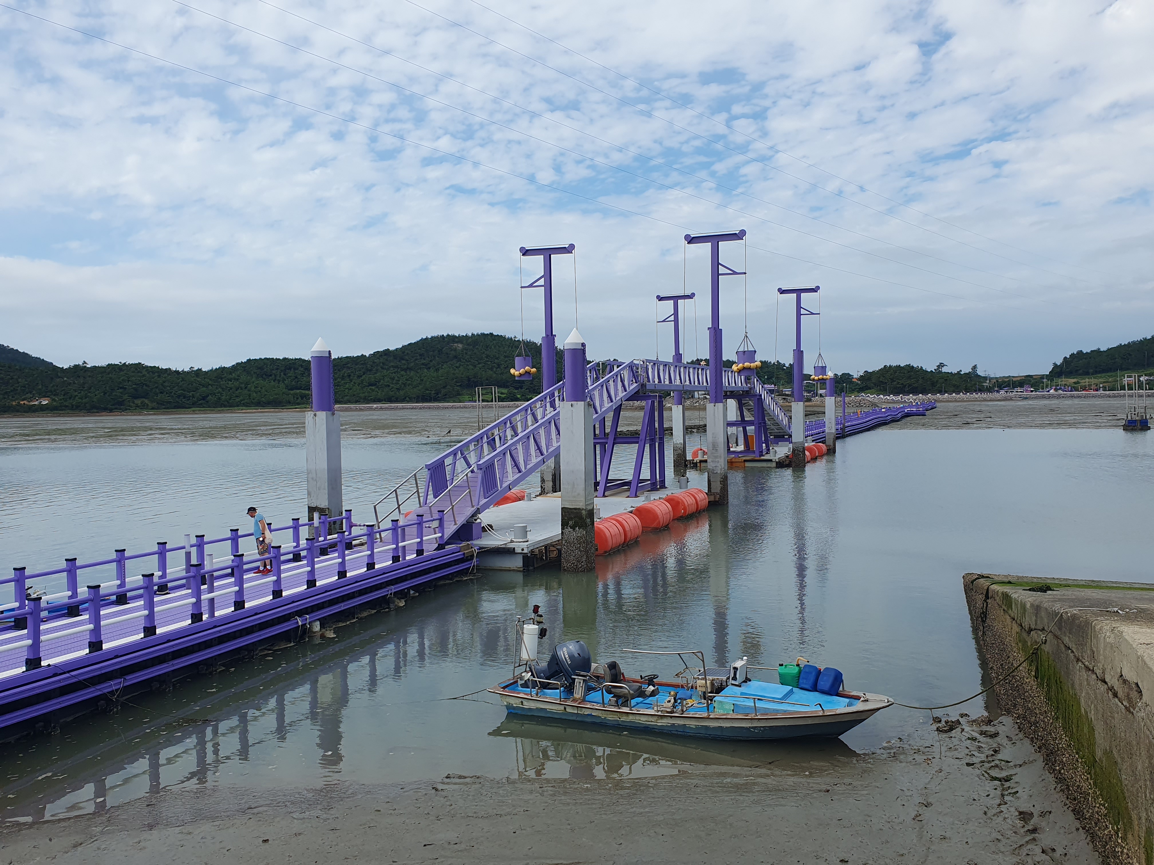 ▽ 문브릿지는 부교로 썰물에는 갯벌에 닿고 밀물에는 떠올라 간만(干滿)과 관계없이 통행할 수 있는 다리이다.
