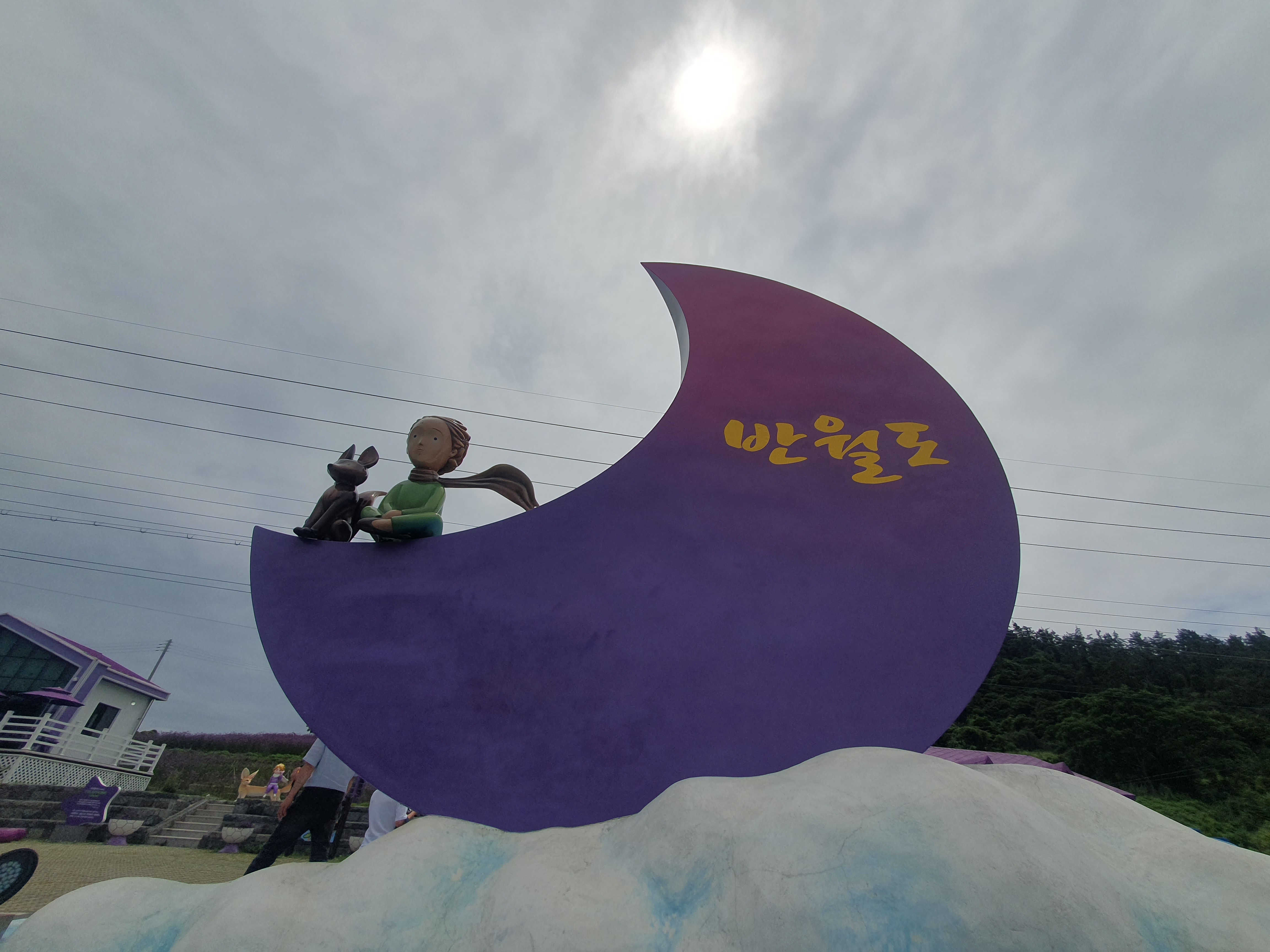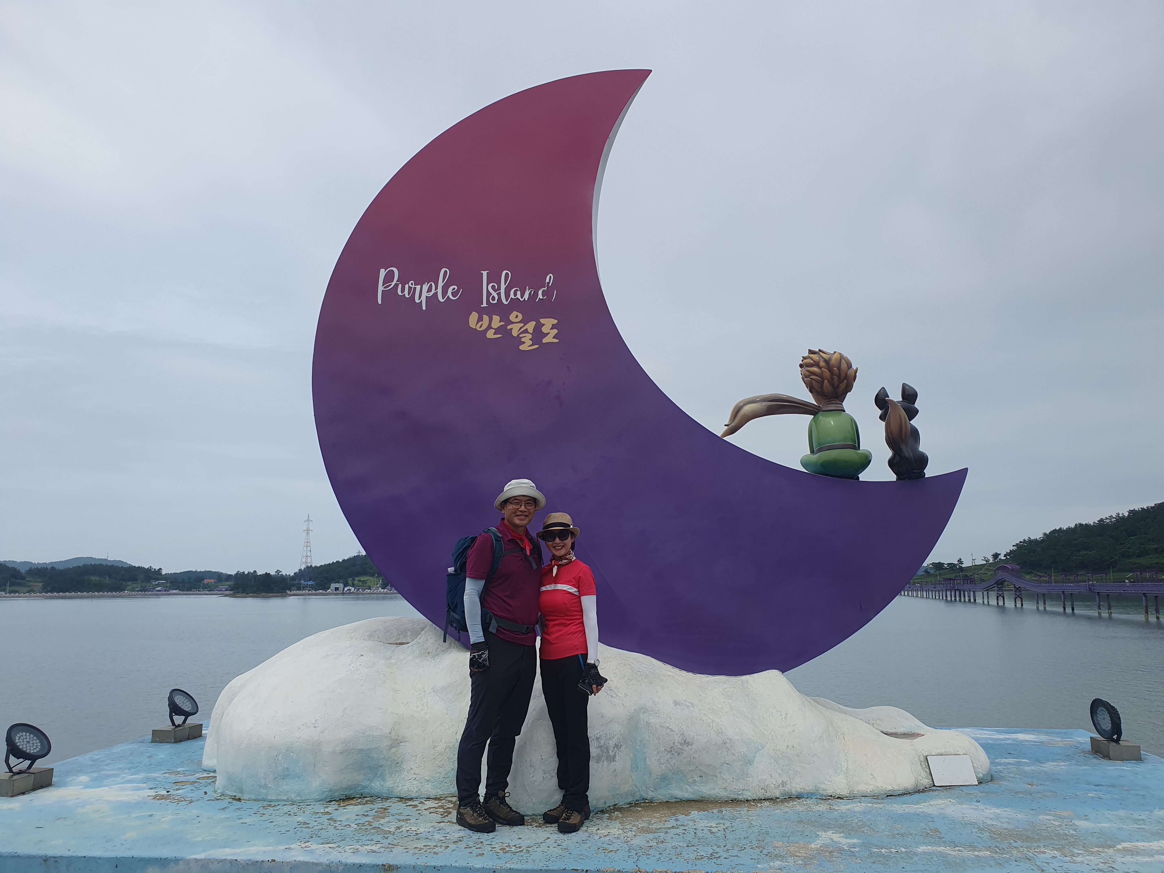 ▽ 어린왕자와 사막여우가 반달에 나란히 앉아 퍼플교를 바라보고 있는 모습이 꿈속의 동화같기만 하다. 섬의 모양이 반달처럼 생겨서 '반월도'라고도 하며 '반드리'라고도 불린다.