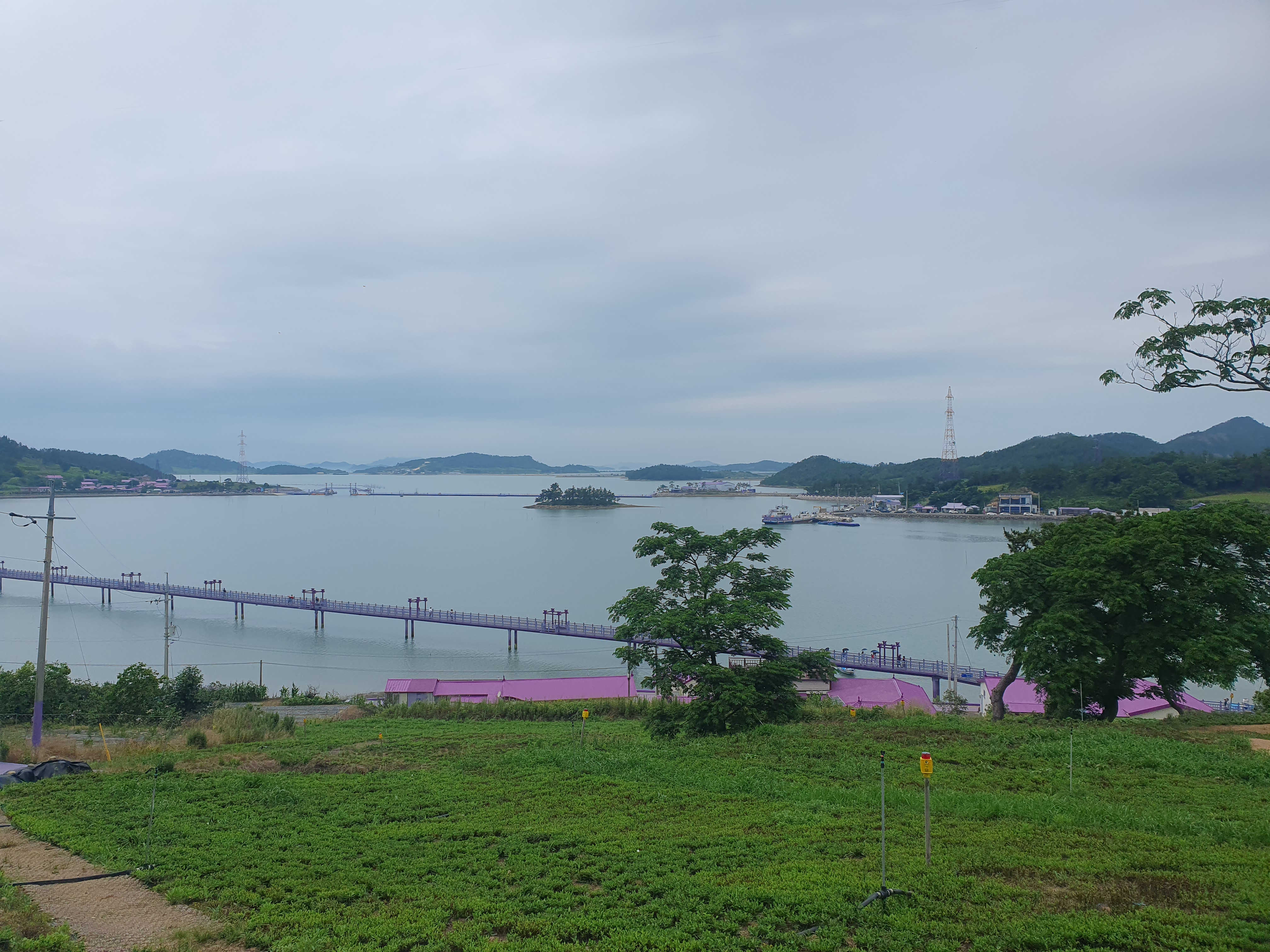▽ 박지도에서 반월도로 이어지는 퍼플교가 보이는 이곳이 9월이면 보라색 꽃이 피는 아스터 국화꽃 정원이다.