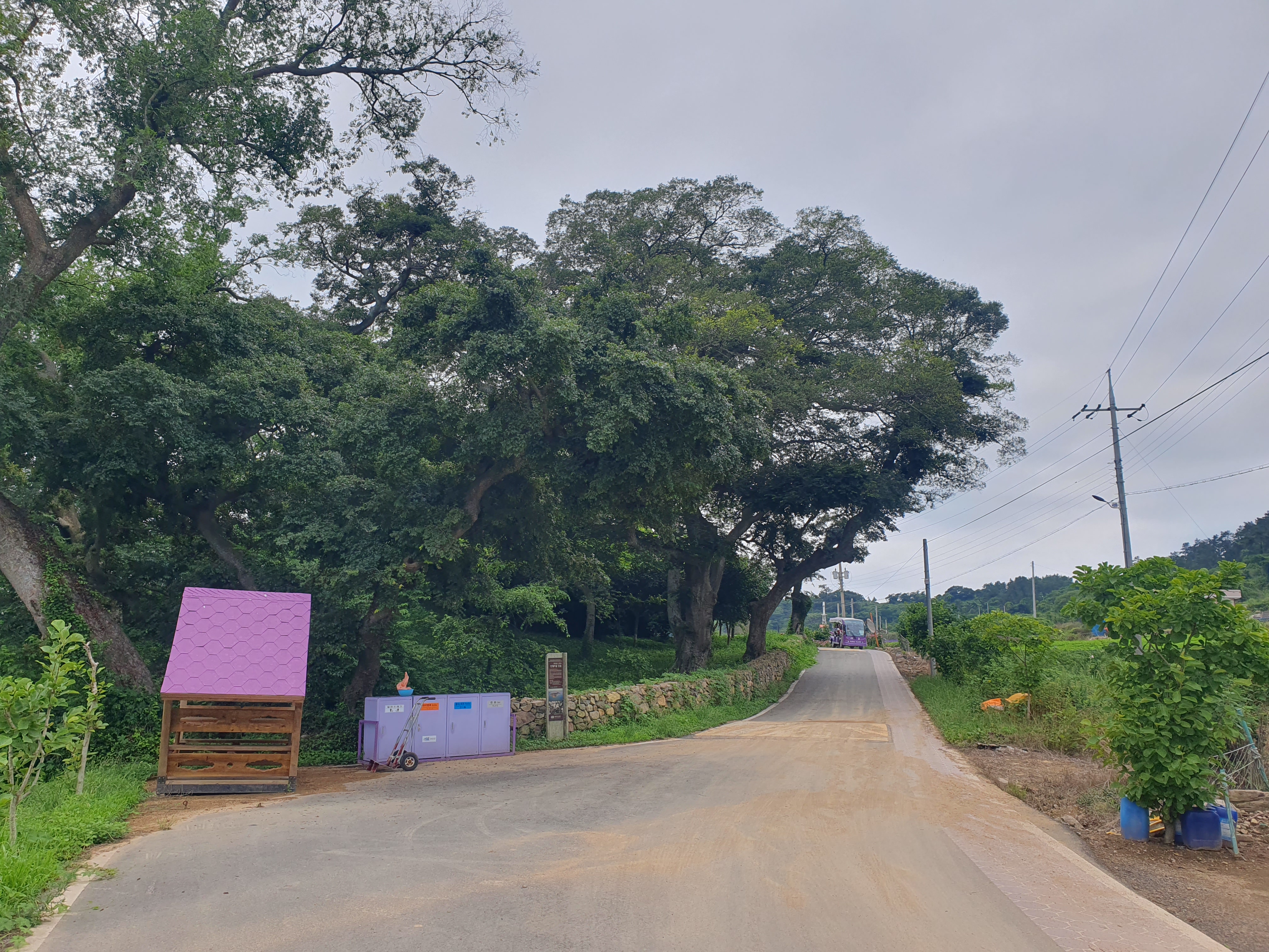▽ 마을 지붕부터 도로, 휴지통, 식당 그릇까지 보랏빛으로 물들어 있다니 내 옷도 보랏빛으로 물들어 버린 것 같다.
