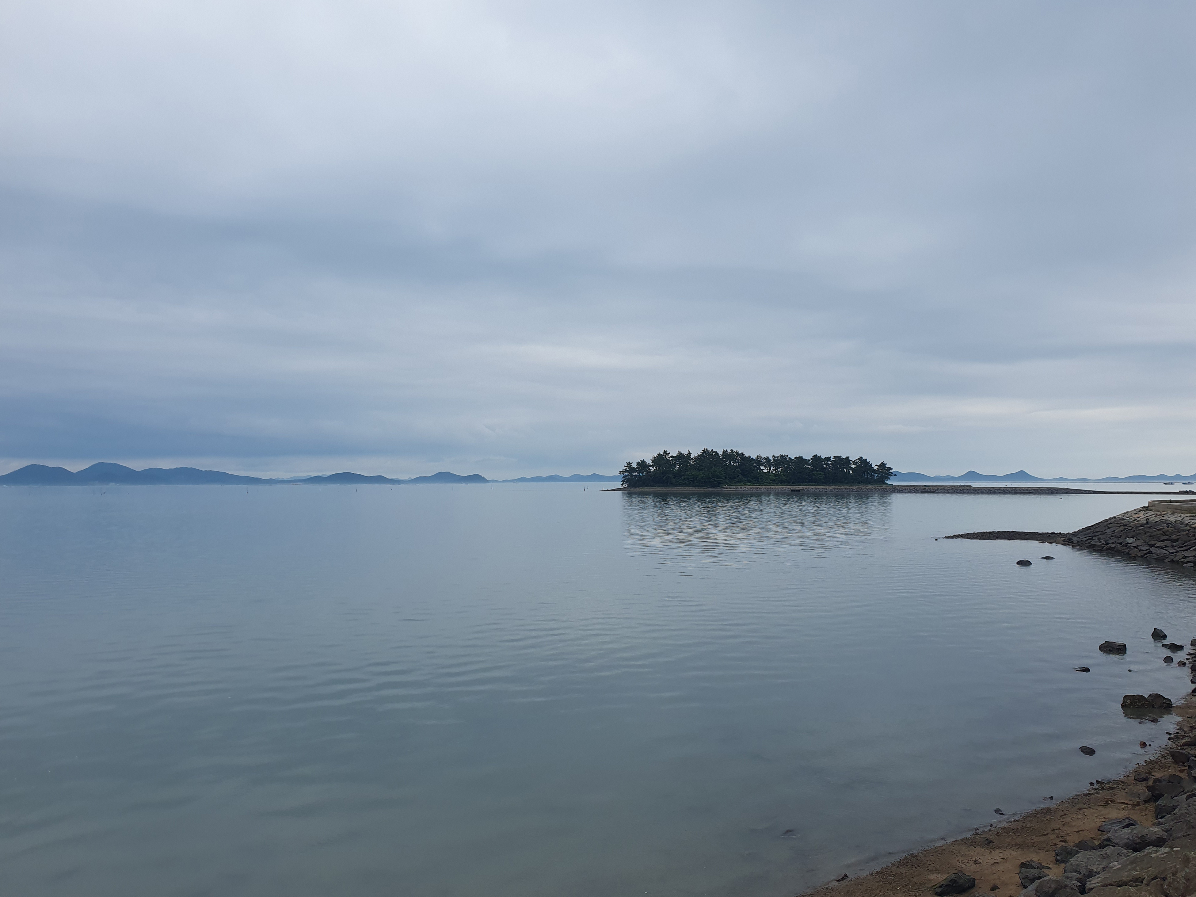 ▽ 앞에 작은 노루섬이 보이고 왼쪽은 장산도, 노루섬 뒤편으로는 상태도가 보인다.