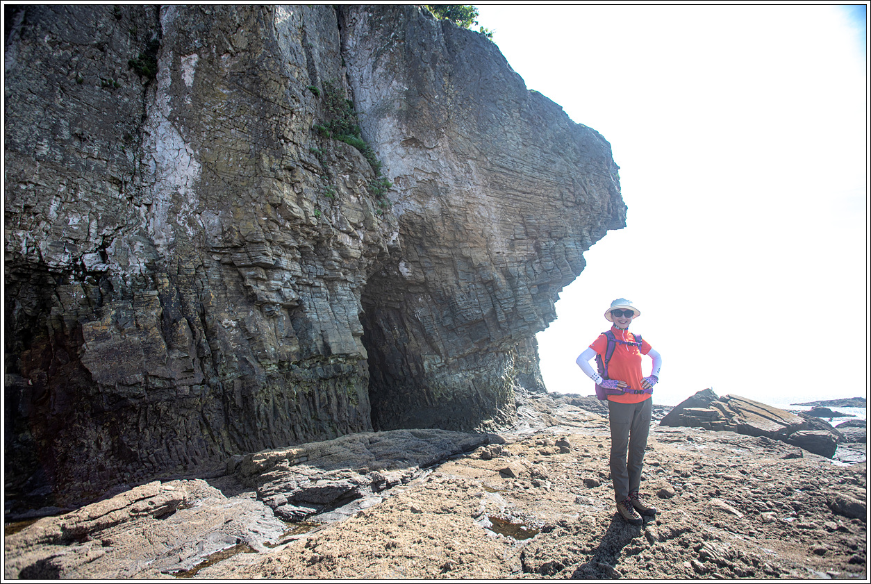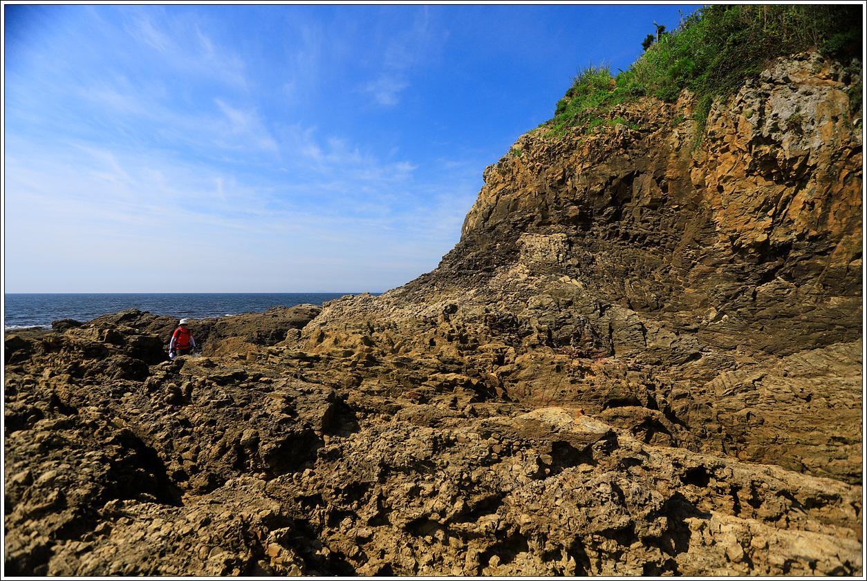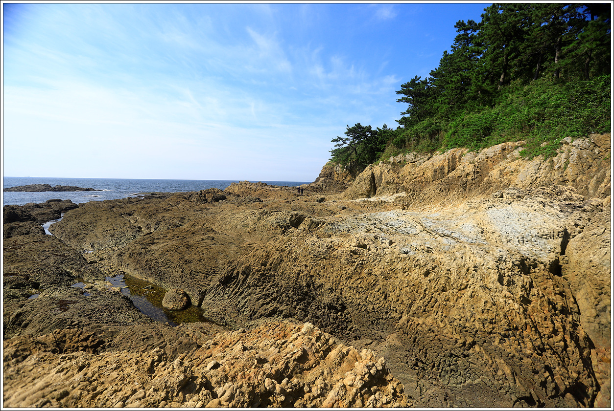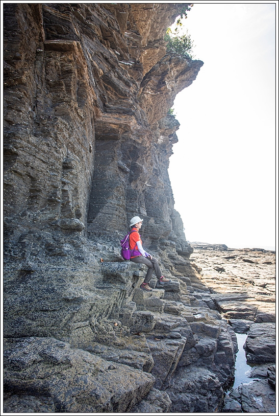 ▽ 작은 해식동굴에서 동굴놀이를 하고 갔으면 좋겠는데 적벽강 해변을 완전히 도는 산우가 많지 않은 것 같고 시간이 촉박한 듯 하여 생략하고 발길을 재촉한다.