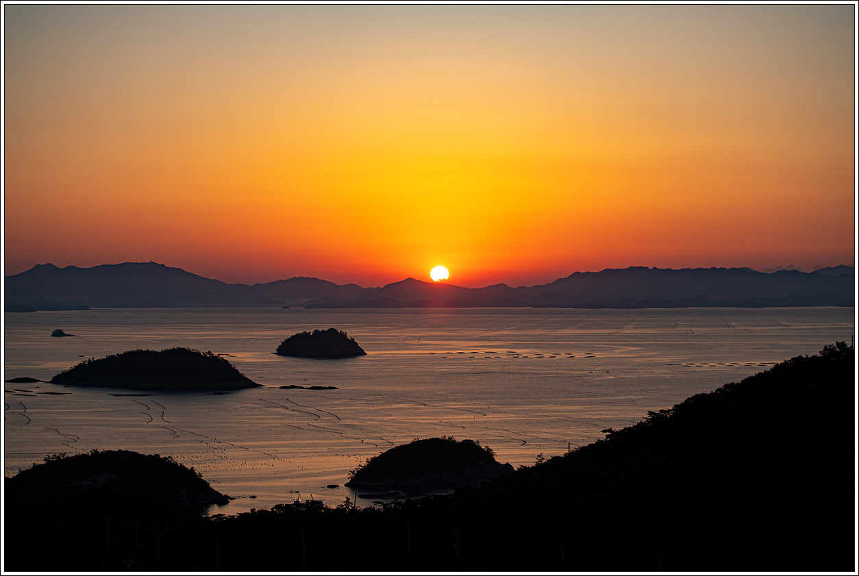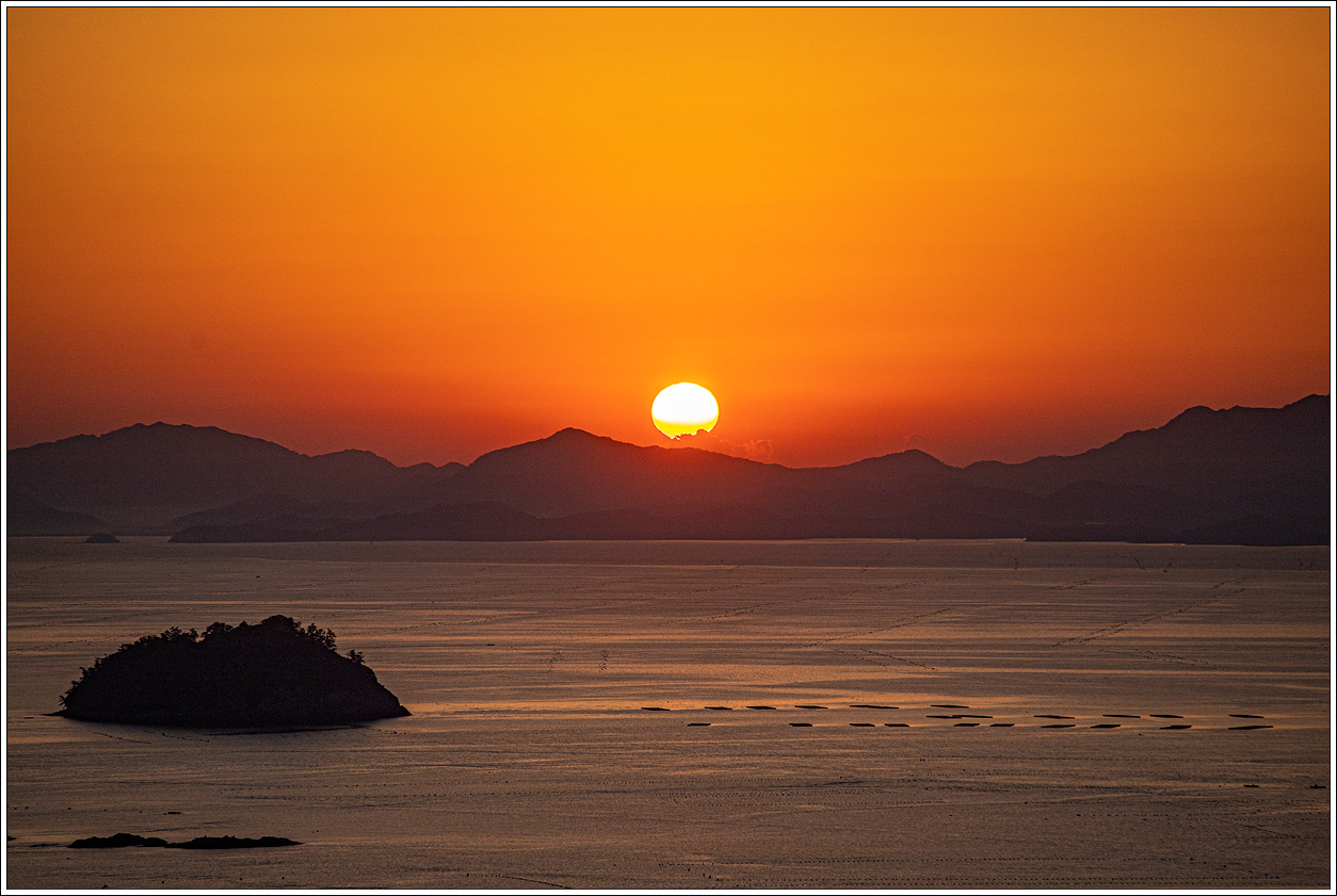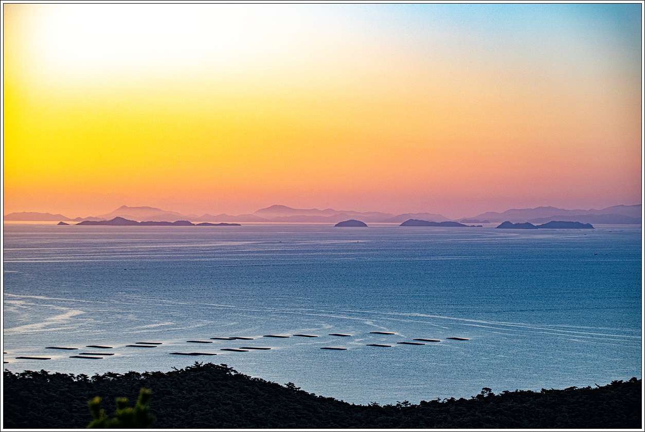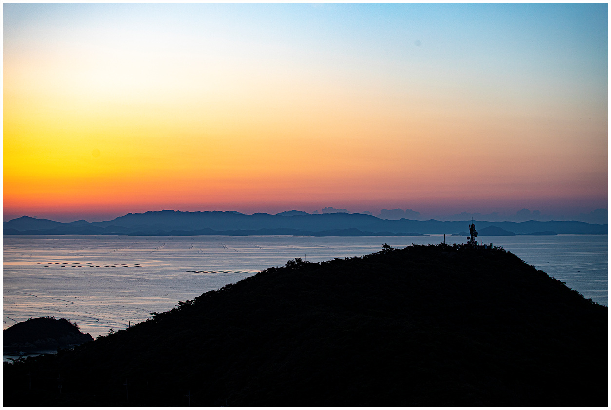 ▽ 해가 떠 오르는 풍경이 그림같다. 지난 주 갔었던 대마도 에보시다케 전망대에서 보는 풍경보다 훨씬 아름다워 보인다.