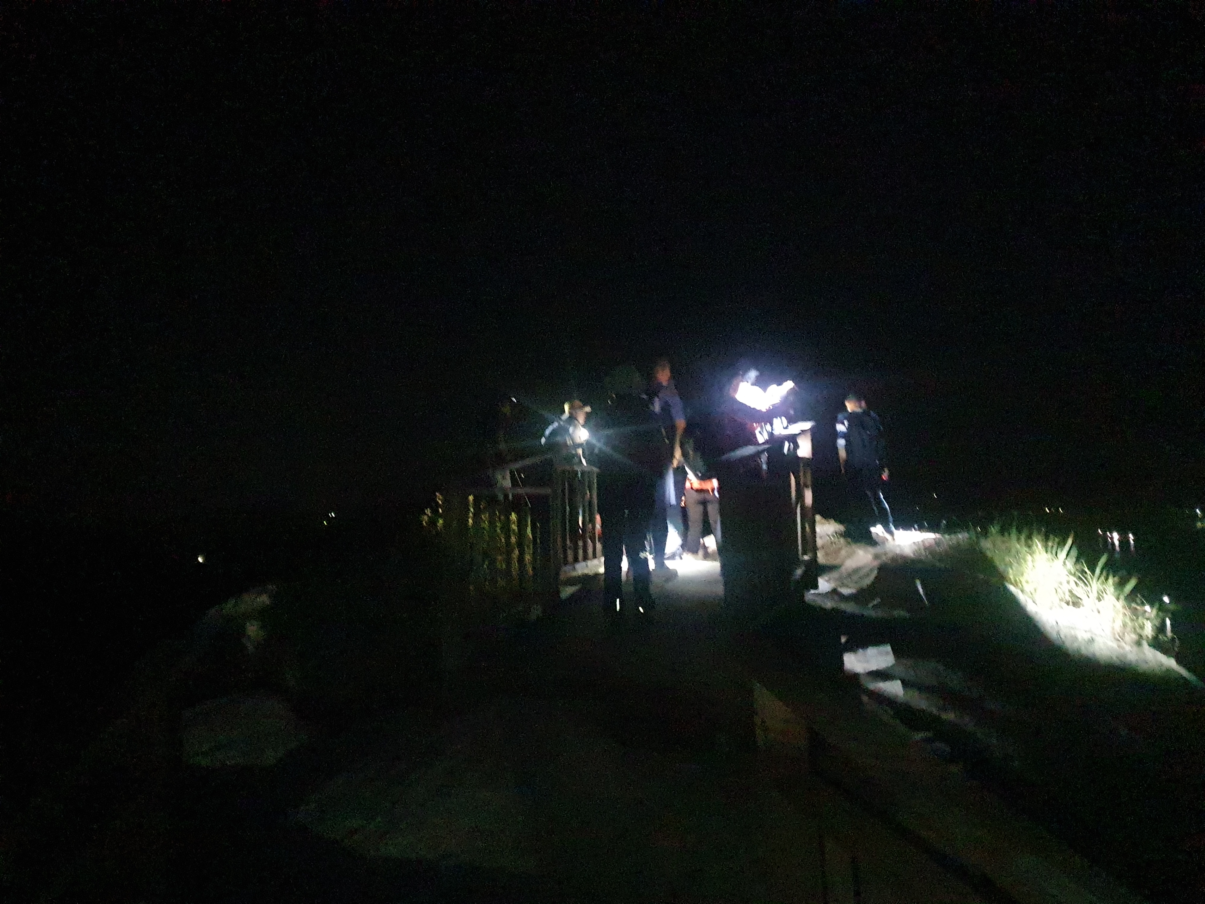 ▽캄캄한 밤에 헤드랜턴을 켜고 남망산을 오르는 것은 의미가 없다고 판단, 전망대에서 동이 트기를 기다렸다가 본격적인 산행을 하기로 한다. 05:00시 부터 동이트는 06:00까지 거의 한시간을 전망대에 올라 아침 간식을 먹으면서 날이 밝기를 기다렸다.