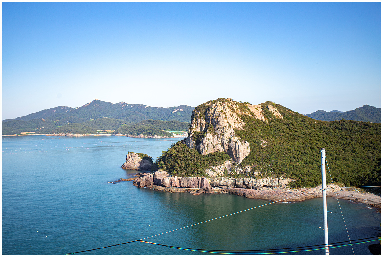 ▽ 멀리 황범도가 보이고 오른쪽 멀리 쏠비치진도의 건물이 보인다.