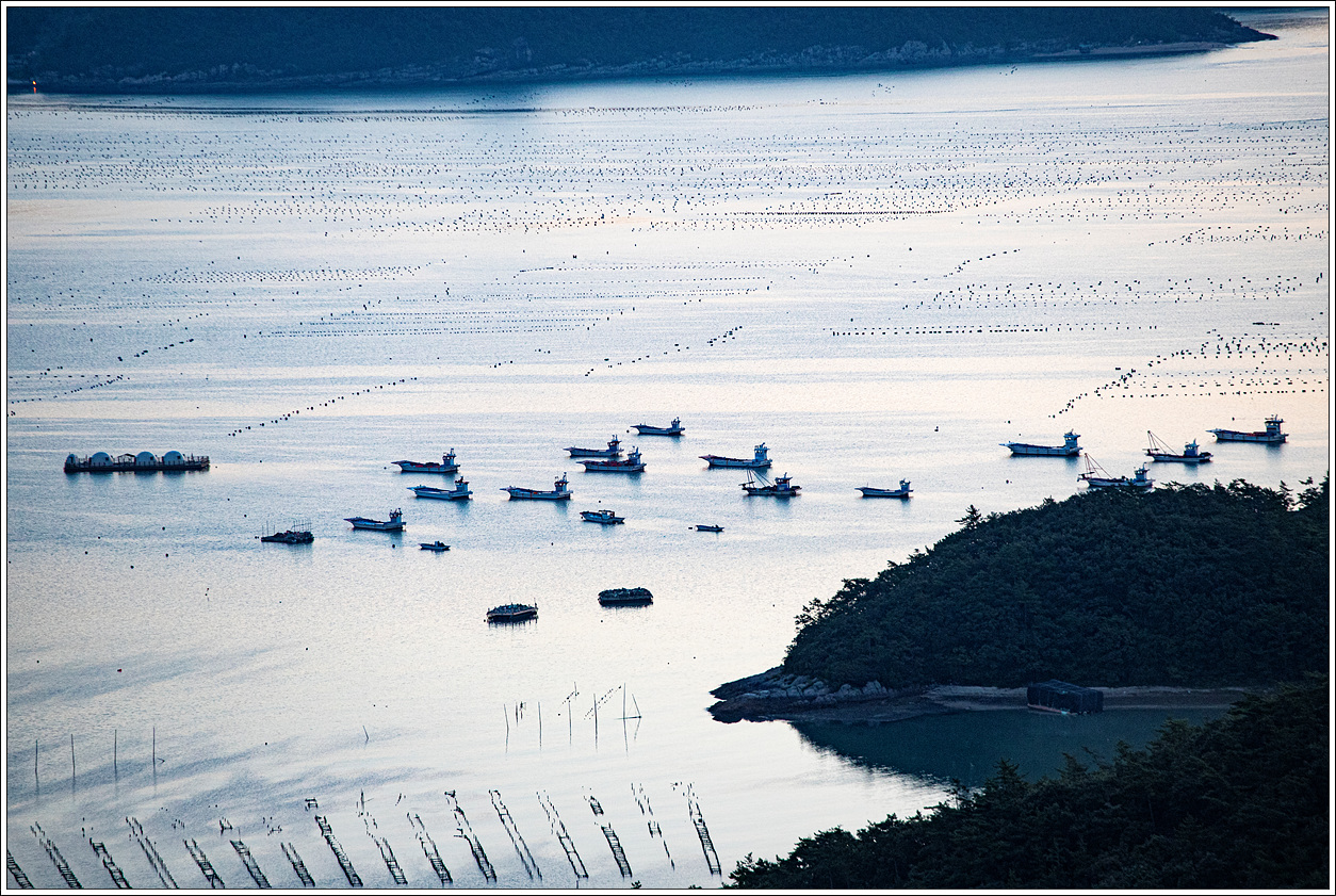 ▽ 해발181m의 높이에 250여미터 거리의 전망대에 오르니 어디가 어딘지 분간이 안된다. 몇 몇은 다시 남망산을 오른다며 아래로 내려간 모양인데 일출을 보려면 이곳이 최적의 장소라 생각이 들어 남망산을 오르려던 계획을 포기하고 대기하면서 시간 절약을 위해 이곳에서 아침 식사겸 간식을 챙겨 먹는다.