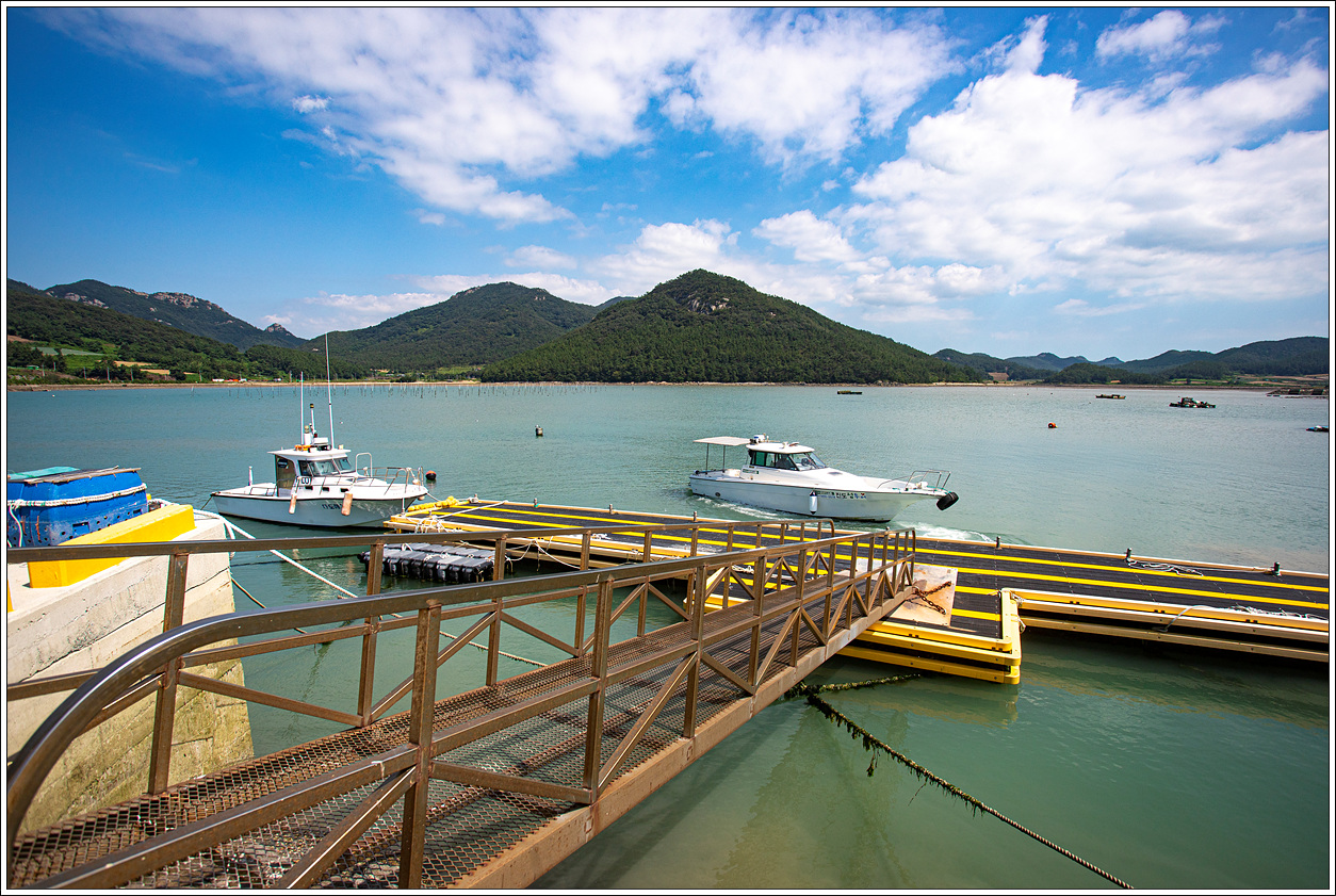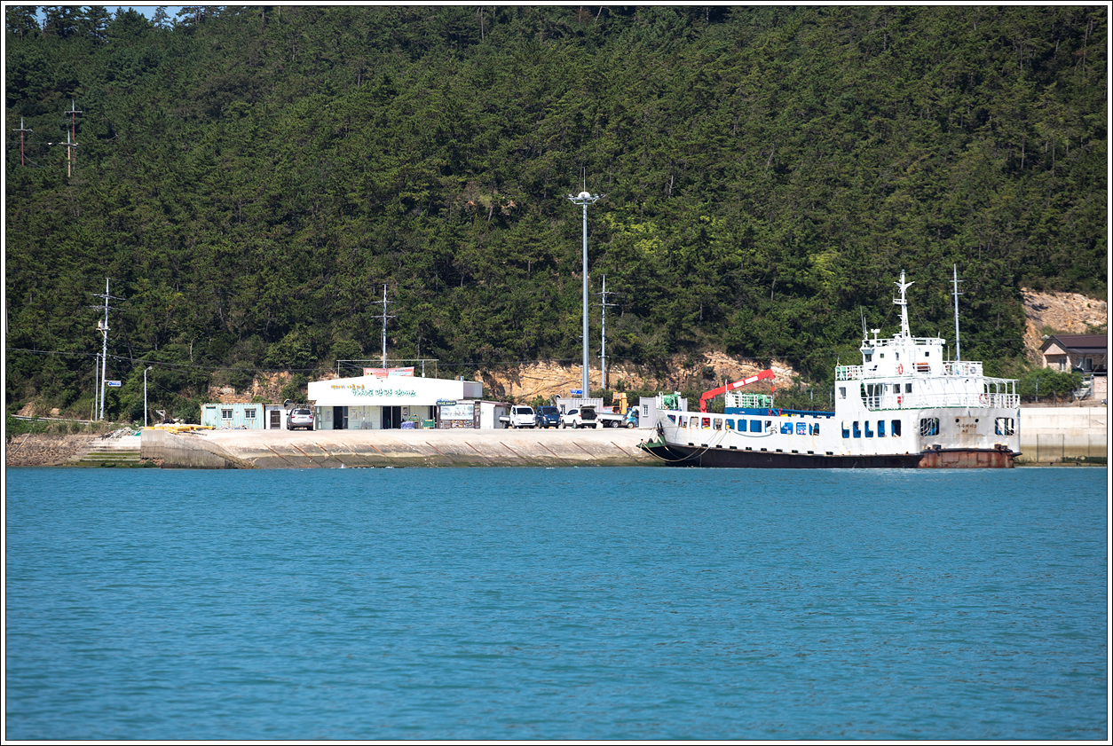 ▽ 환복을 했는데 선착장까지 또 걸어가자니 땀을 또 흘릴 것 같고 여간 신경쓰이지가 않았는데 식당 주인이 올 때처럼 또 선착장까지 트럭으로 태워다 주신다고 한다. 이렇게 고마울 수가... 그렇게 해서 트럭을 타고 선착장에 오자마자 마침 선장님도 식당에서 승용차로 선착장에 함께 도착, 바로 세방선착장으로 출발한다.