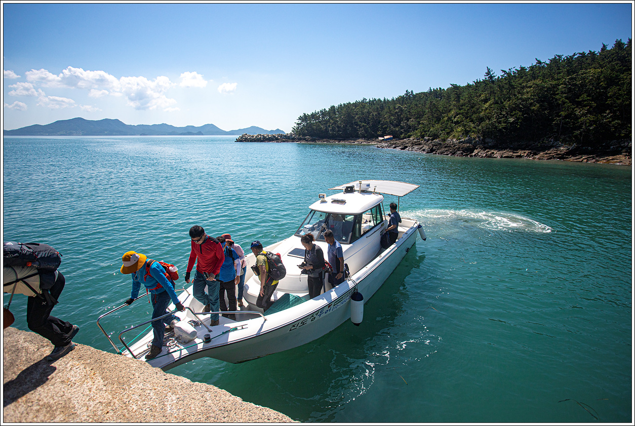 ▽ 세방선착장에서 이곳까지 20분 거리이다. 뒤로 오는 팀은 이 배가 다시 세방선착장으로 가서 태우고 와야 하므로 결국 왕복 시간을 따지면 40분이 늦는 셈이다.