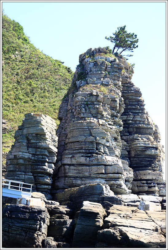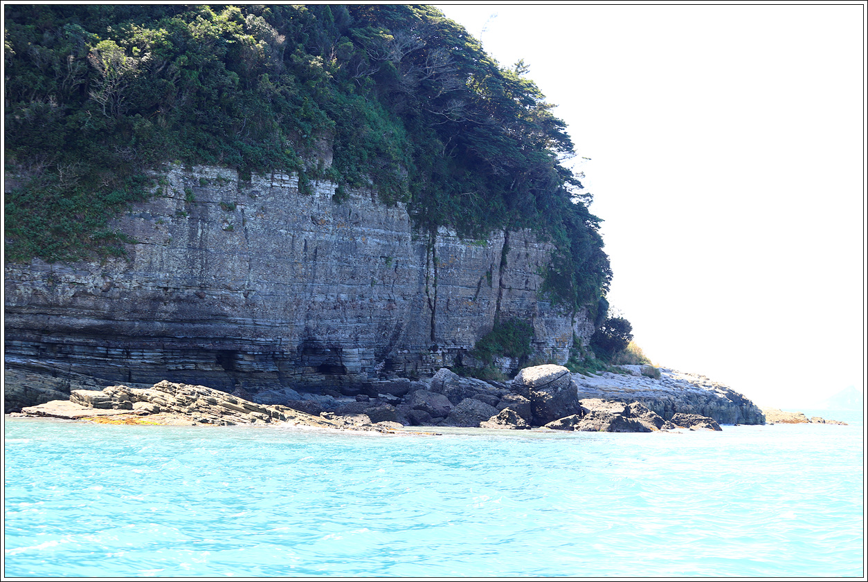 ▽ 점심을 먹고 선장님과 대화하던 중 금일 갔었던 접도의 퇴적층이 볼만 했다고 말하자 불도에 대해서 얘기하면서 사진을 보여 주는데 퇴적층이 정말 멋있었고 관심을 보이자, 실제 보여 주고 싶으셨는지 세방선착장의 직선거리로 운항을 하지 않고 불도로 우회를 해서 불도 해상투어를 해 주시겠다고 마이크로 산우들에게 안내하자 모두 환호성을 지른다. 아래 사진이 불도로서 한 바퀴 돌고 세방선착장으로 이동하게 되는데 우리에게만 제공된 보너스인 것 같아서 정말 감사하지 않을 수가 없다.