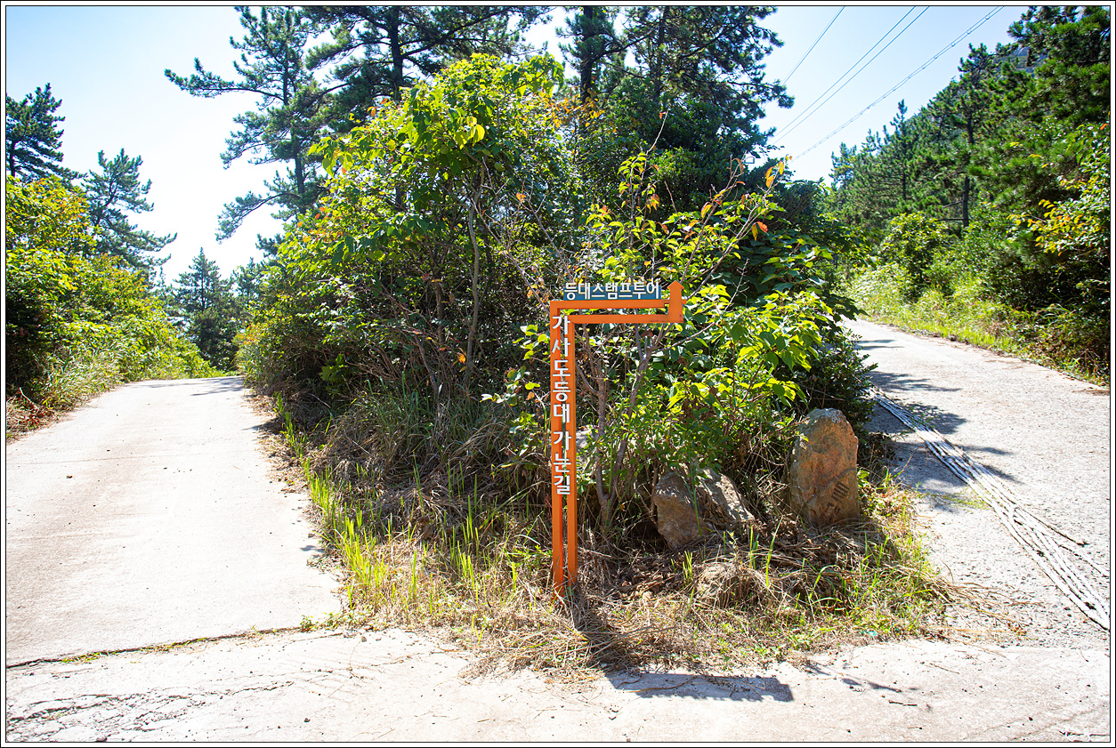 ▽ 가사도선착장에서 이곳으로 넘어오게 되면 이 갈림길에서 왼쪽은 해변으로 내려가는 길이고 직진을 해야 등대로 가는 길이다.