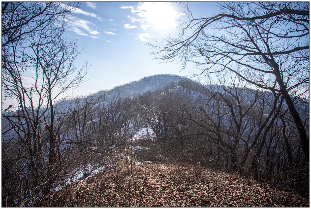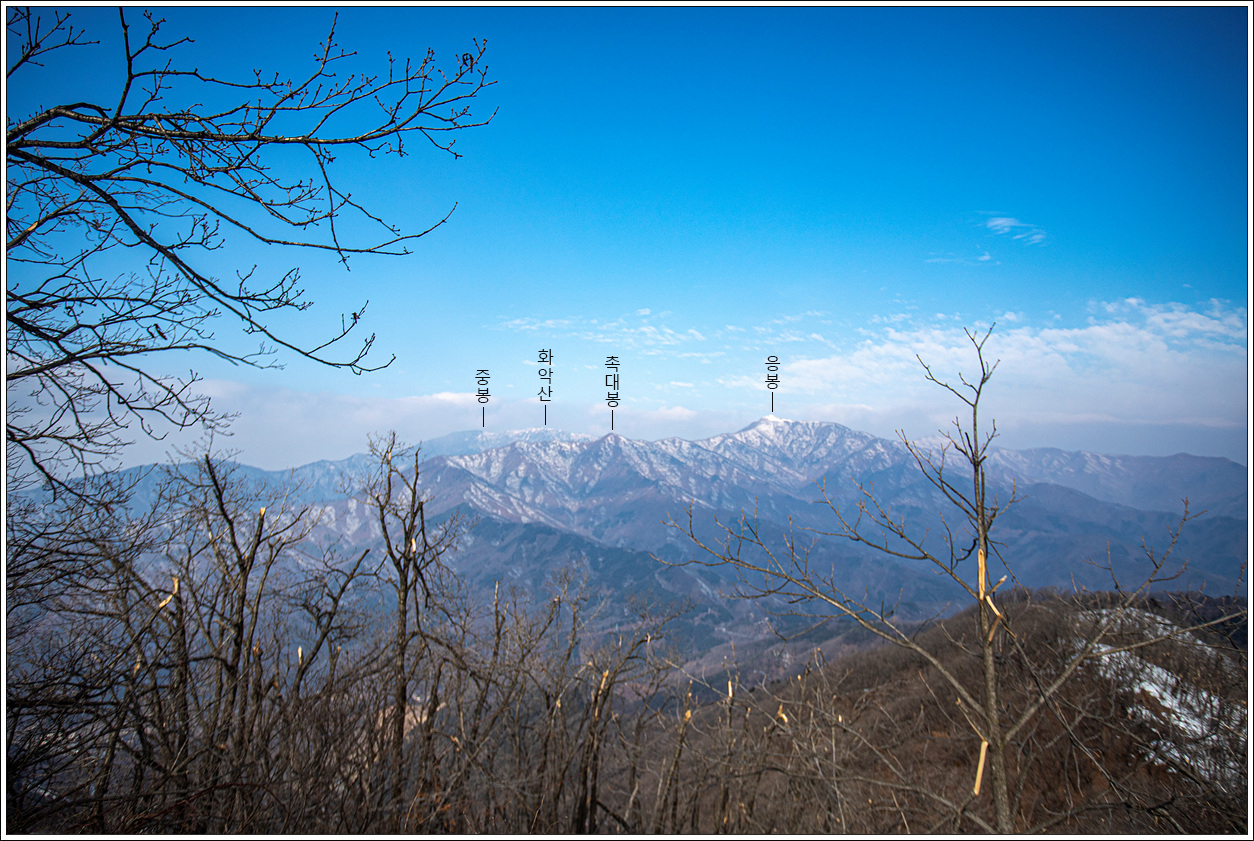▽ 나뭇가지 사이로 보이는 삼악산으로 그나마 구름이 살짝 걷혀서 보게되니 반갑다.