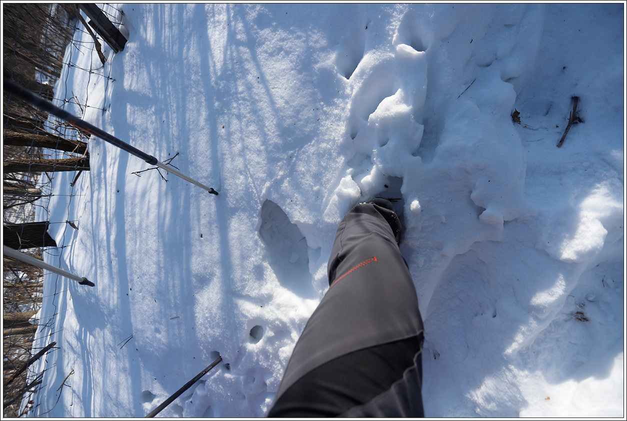 ▽ 발자국을 벗어나면 발목이상의 깊이로 빠지는 상태지만 스패치를 착용하려 해도 귀찮아서...