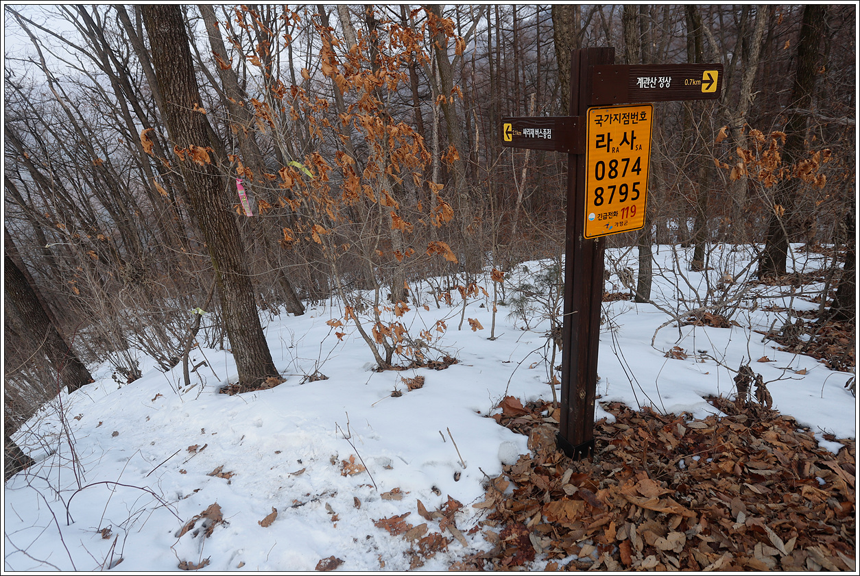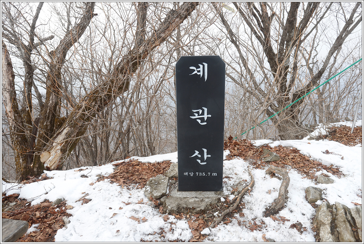 ▽ 싸리재로부터도 1.2km를 더 걸어 올라 온 계관산 정상...