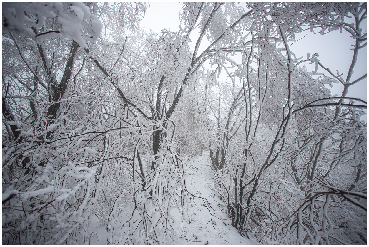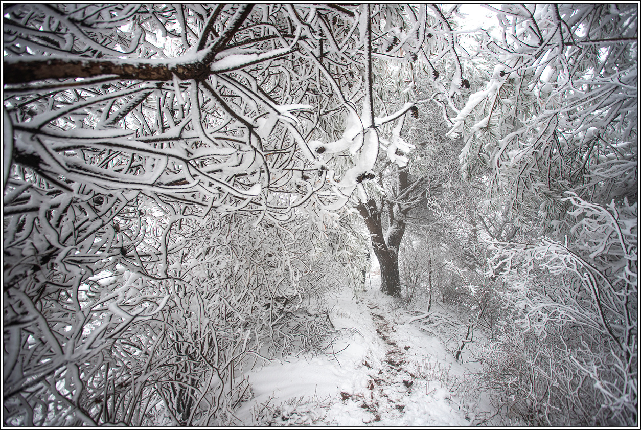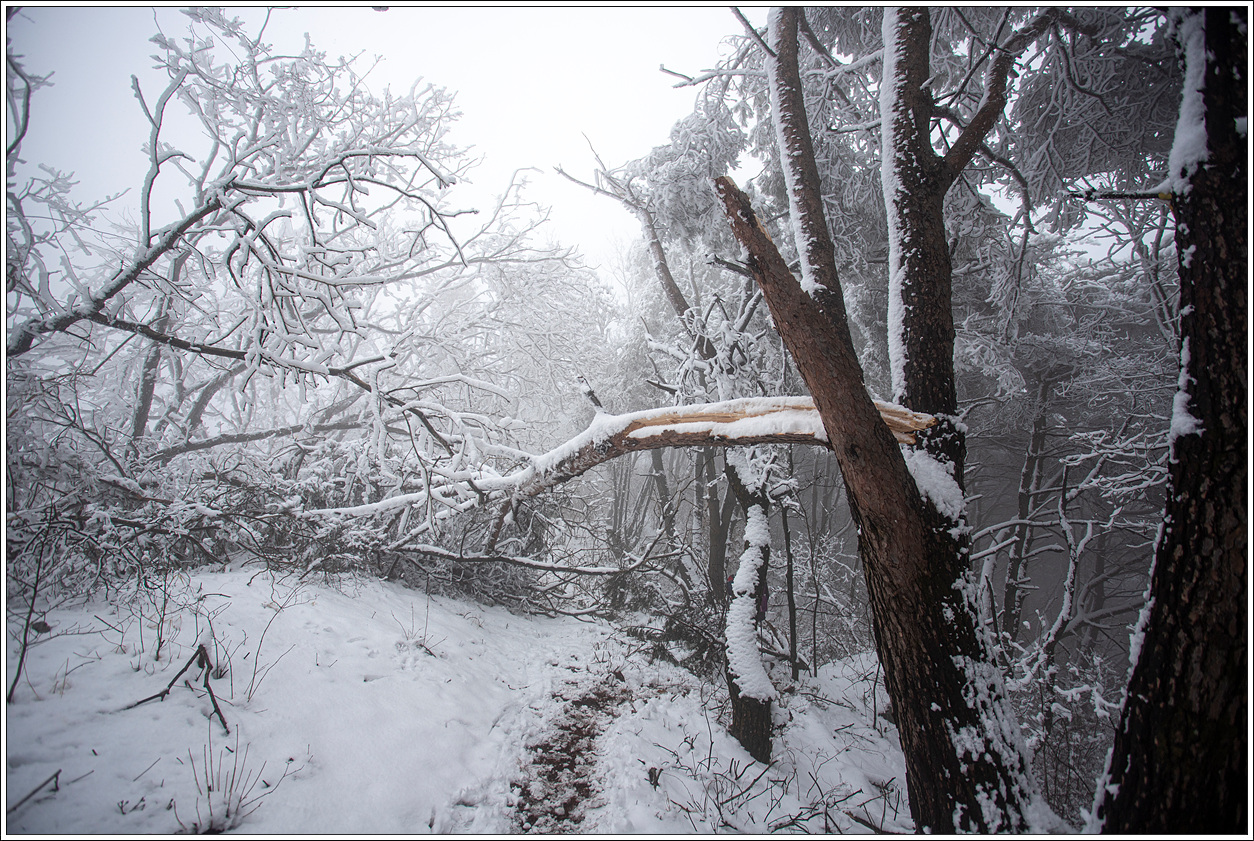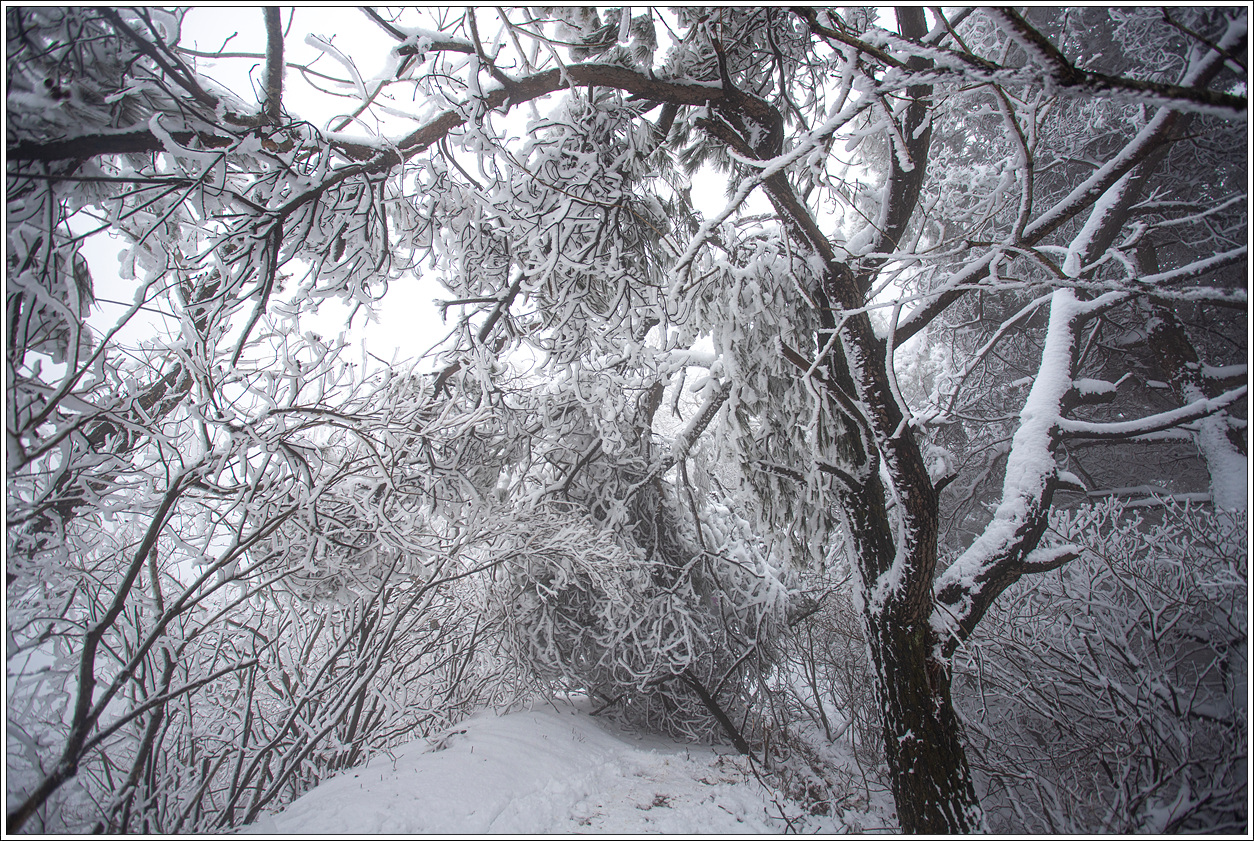 ▽ 때로는 무거운 눈을 이기지 못해 등로를 덮친 곳이 더러 보인다.