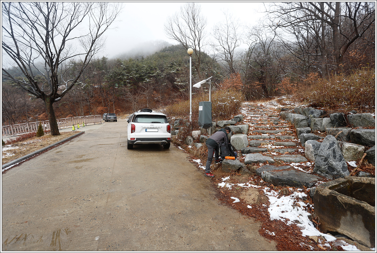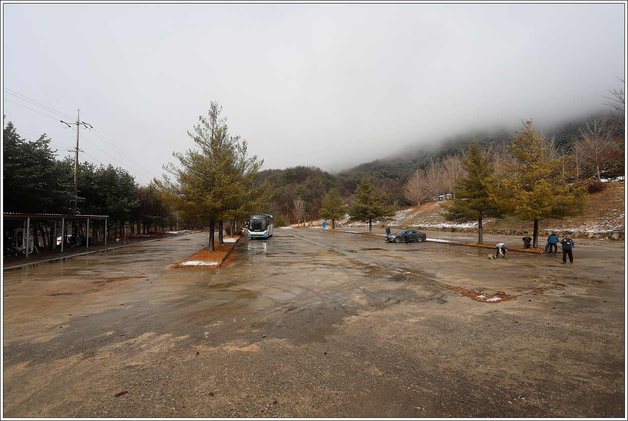 ▽ 수도권에는 오늘 오전까지 비 소식이 있었지만 아랫 지방은 흐리다는 예보였었는데 들머리 주차장에 도착하니 이렇게 안개까지 껴서 오늘 산행 중 조망은 글렀다는 생각에 실망이 크다.