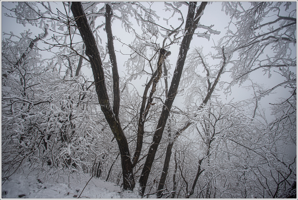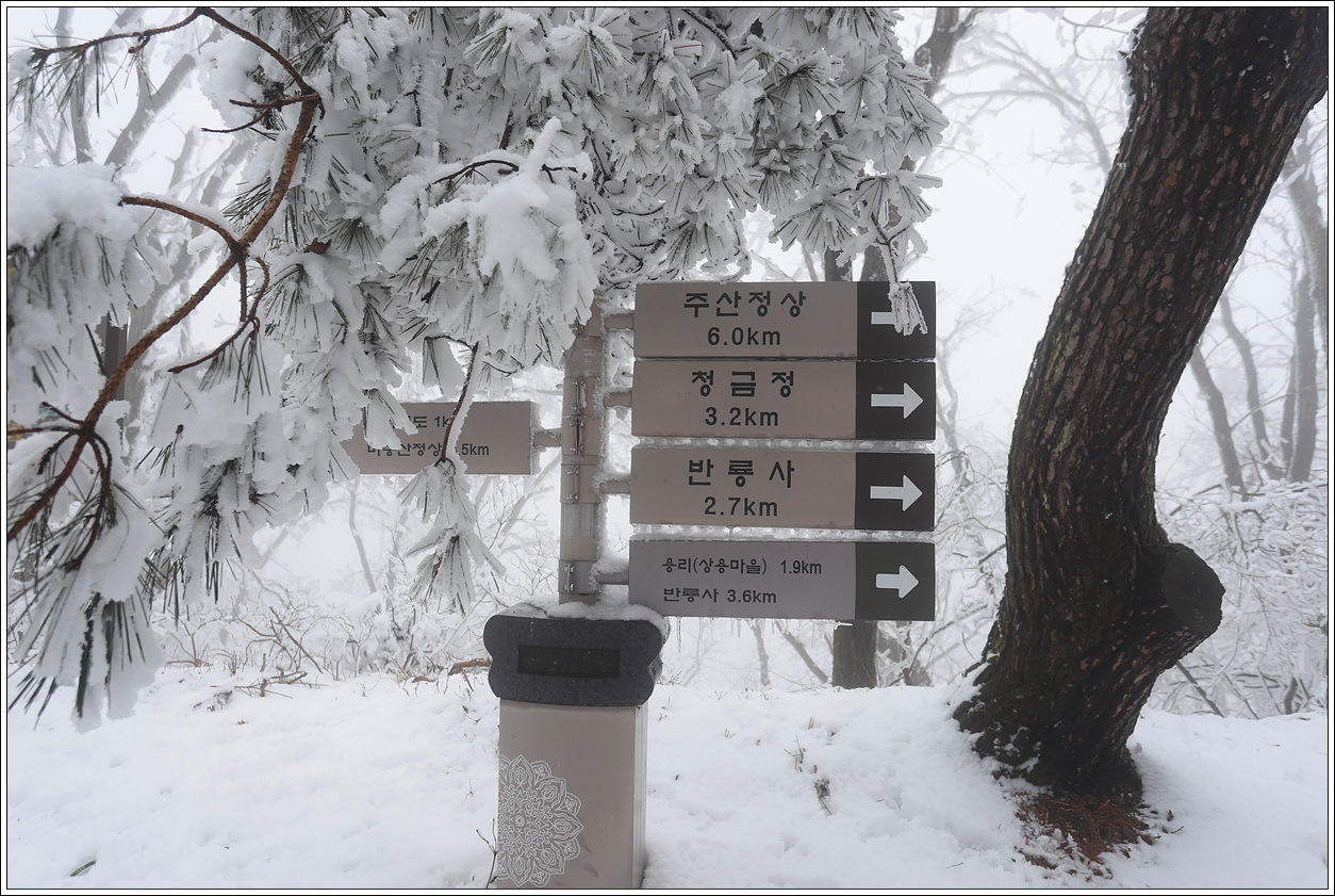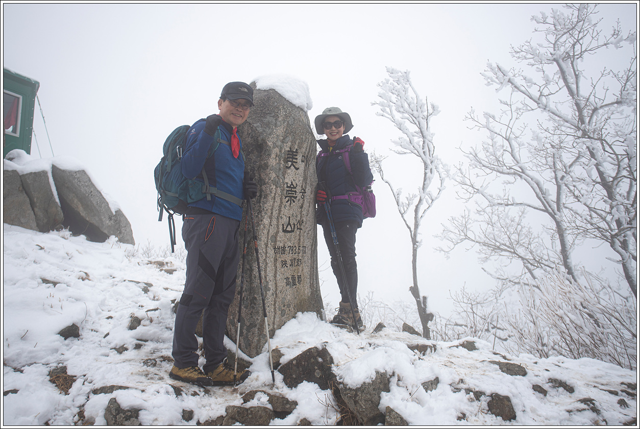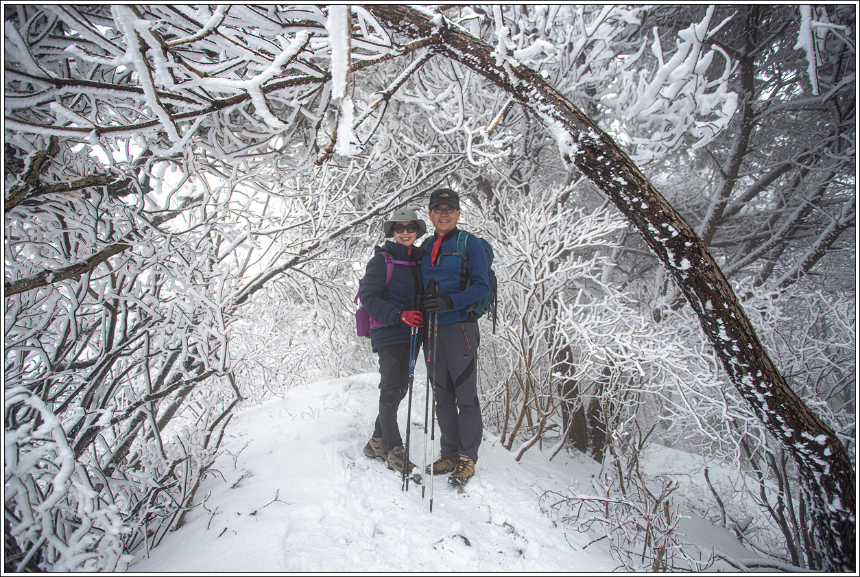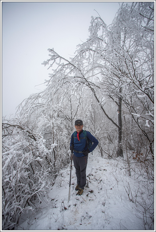 ▽ 북쪽 방향은 남쪽 사면과 달리 영하의 추위에 눈이 얼어 붙고 상고대까지 형성이 되어 예상 밖의 설경을 보게 되어 환호성이 절로 나온다.