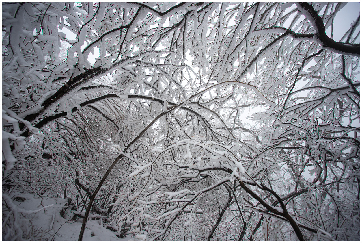 ▽ 상고대는 상록수 보다도 잔가지가 많은 교목이나 낙엽수에 형성되는 것이 더 보기가 좋다.