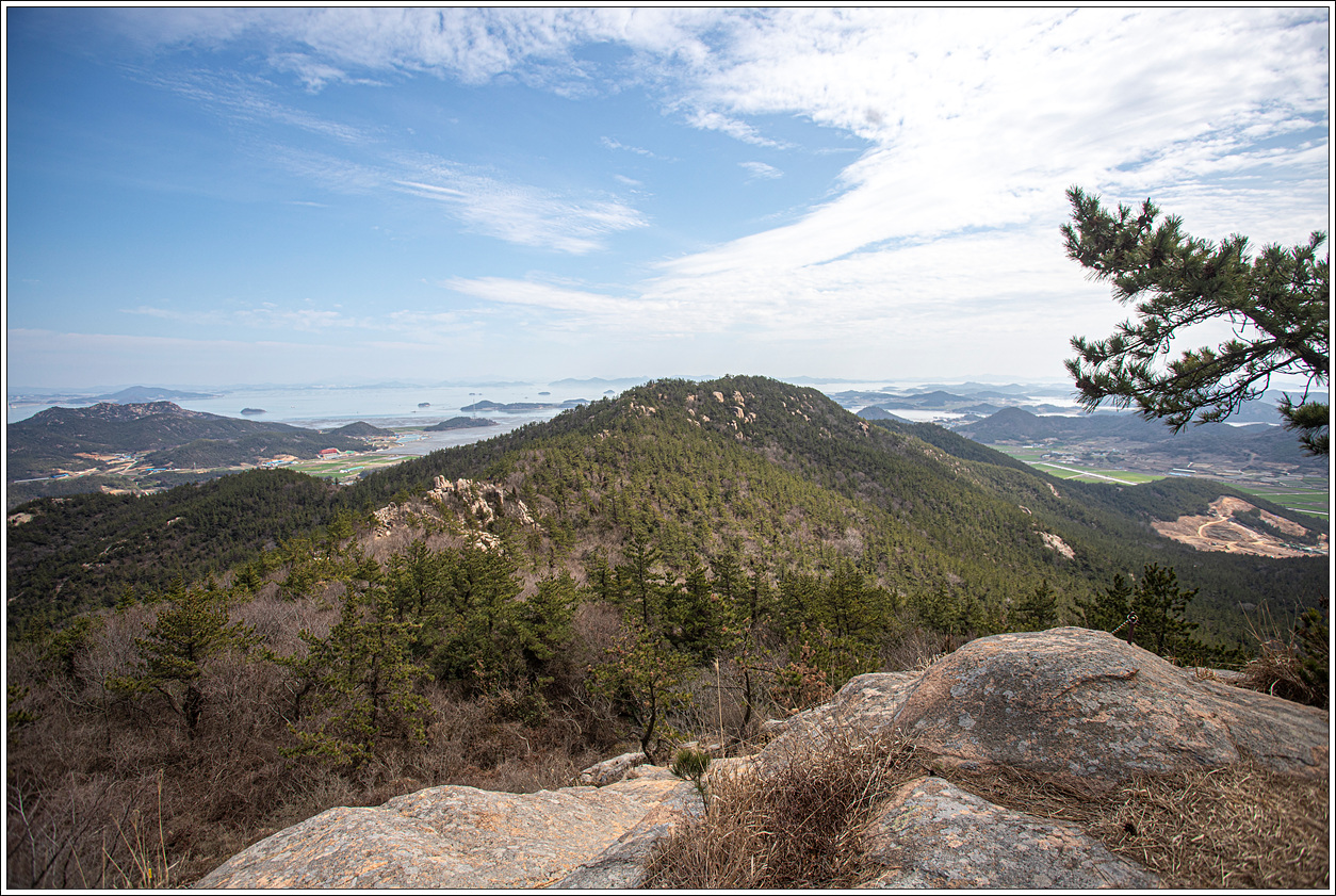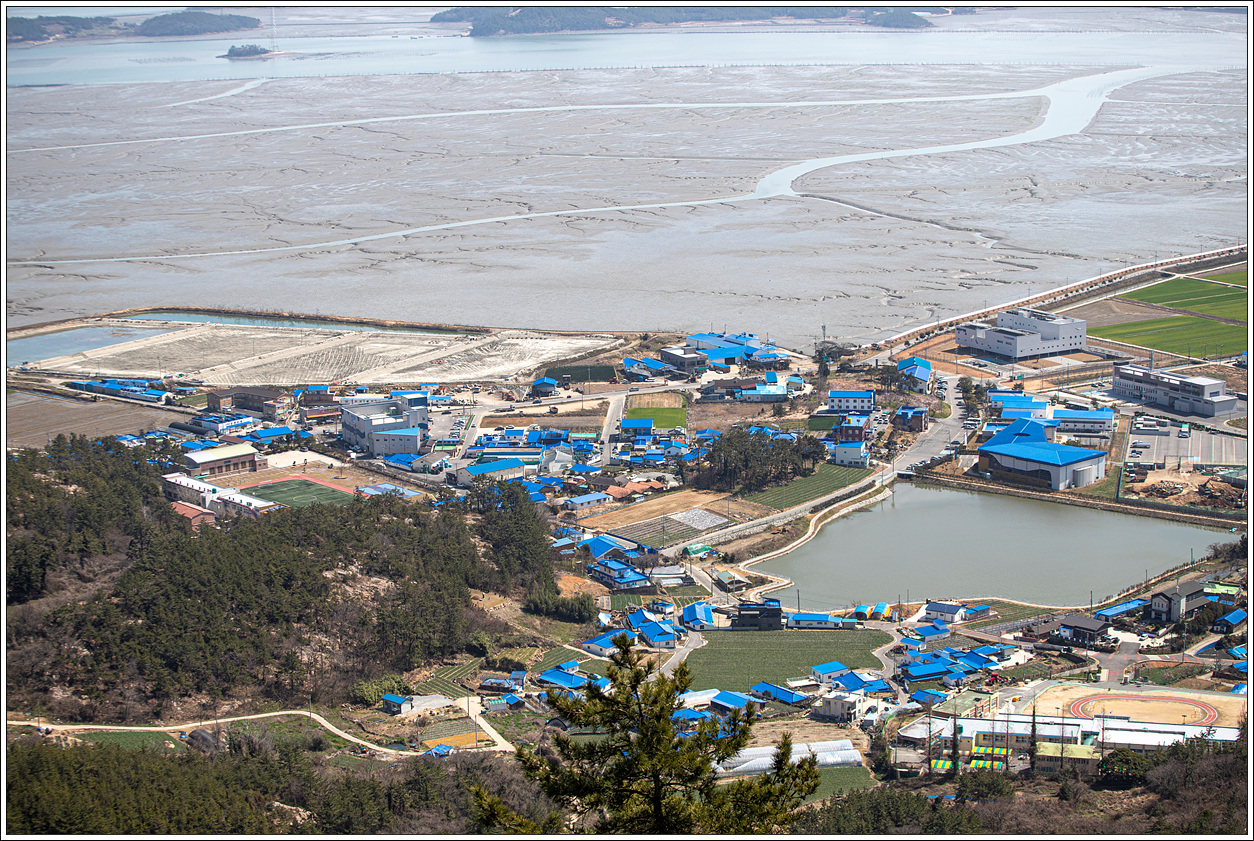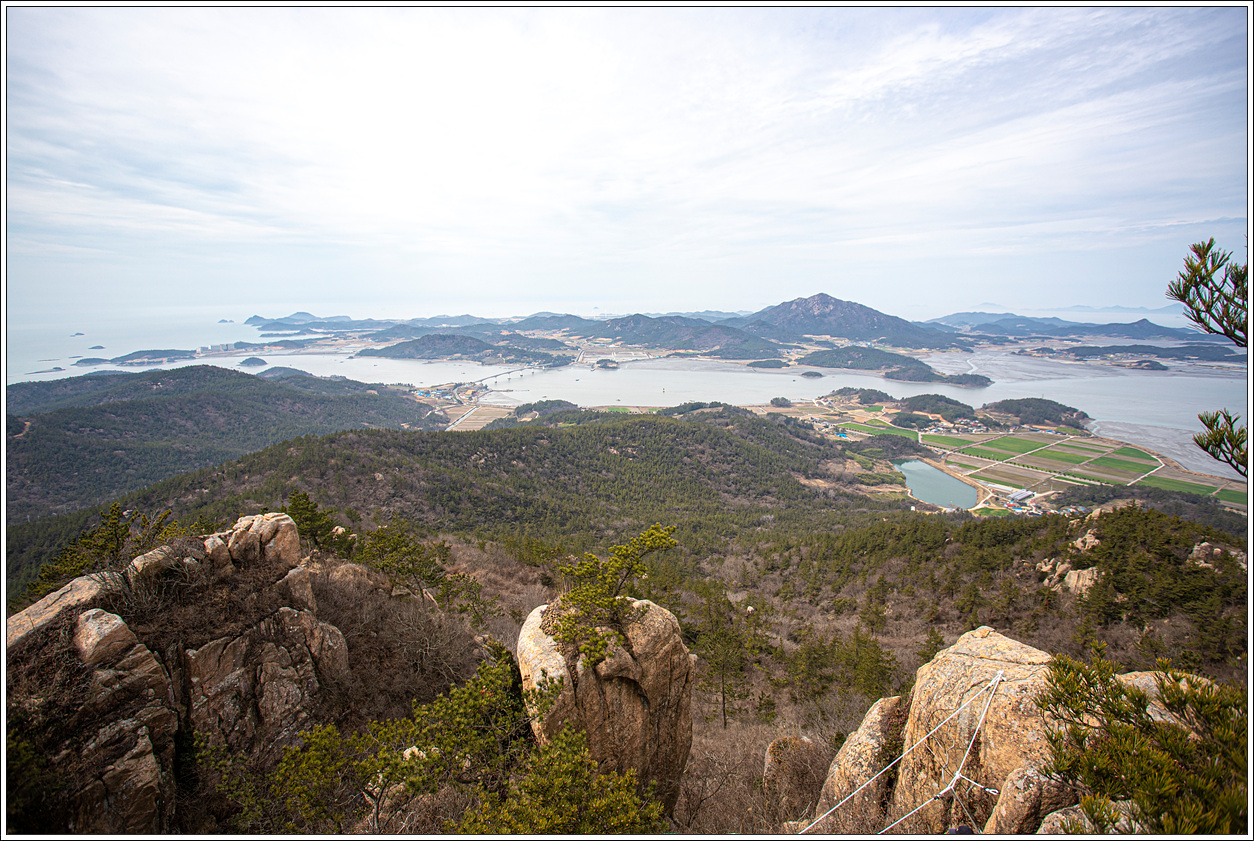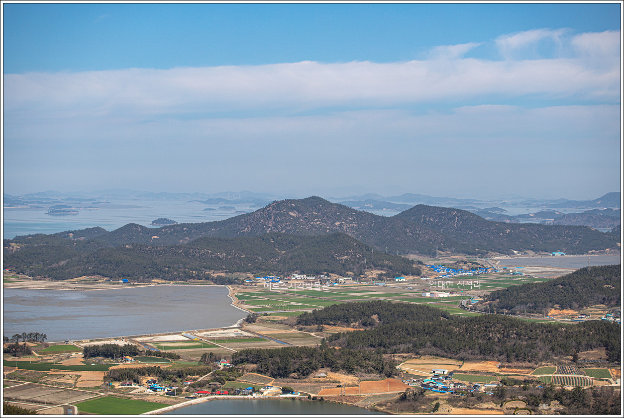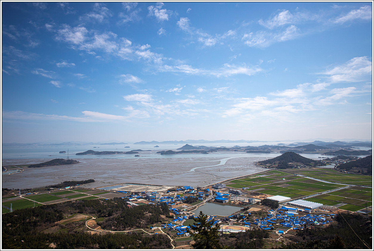▽ 첫 조망터에서 전망을 보니 날씨가 받쳐주는 풍경이 그림 같다. 전에 왔을 때와 썰물 상태가 비슷한데 그 당시는 미세먼지로 조망이 별로였으나 오늘은 최고의 조망이다.