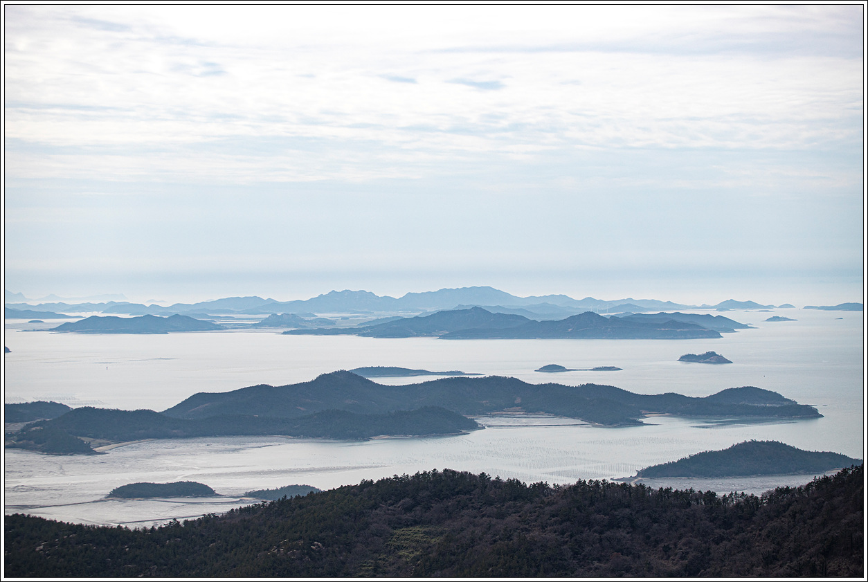 ▽ 신안군의 많은 섬들이 있지만 암태도 승봉산 정상에서 보는 조망은 단연 최고라 할 수 있다. 지리적으로 신안군의 가운데 있을 뿐만이 아니라 다섯 번째로 높은 산이기도 하여 가시거리만 좋다면 360도 회전하여 일망무제로 조망할 수 있다.
