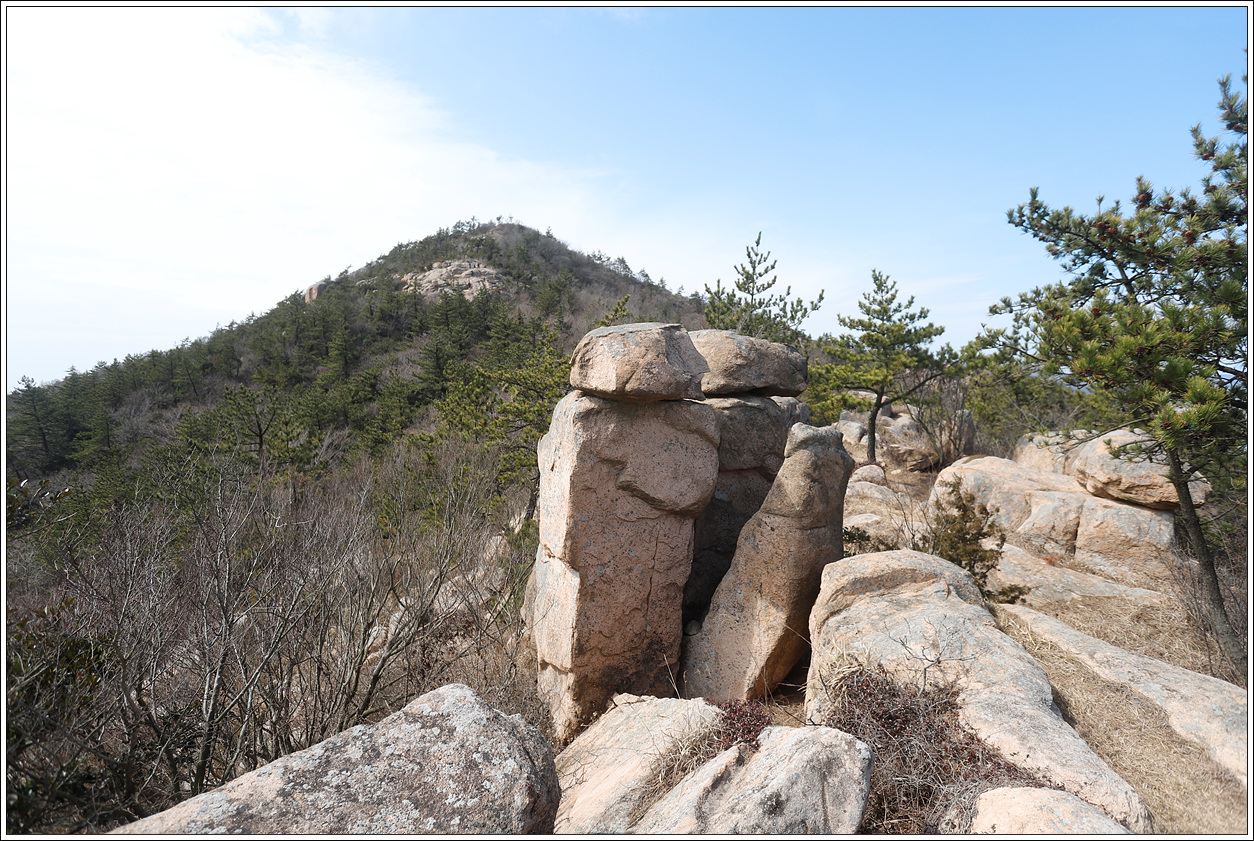 ▽ 흙 산길에 느닷없이 이러한 바위군을 보게 되면 비경이 될만하고 우람하지도 않으면서 아기자기한 모습들이 나름 운치가 있다.