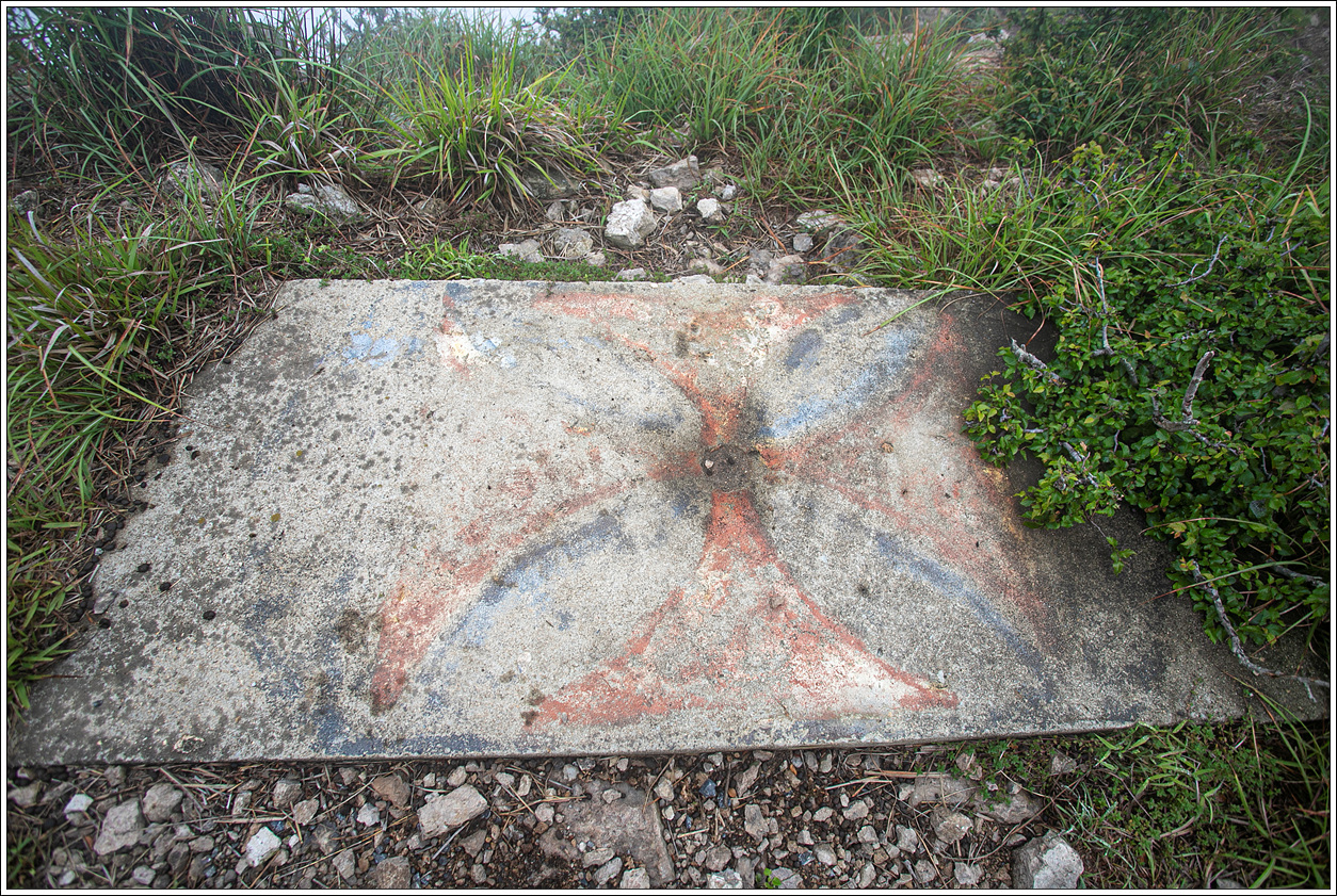 ▽ 정상에는 이러한 콘크리트에 마크와 같은 그림이 새겨져 있는데 부대마크라면 어느 부대였는지 궁금증이 가시지 않는다.