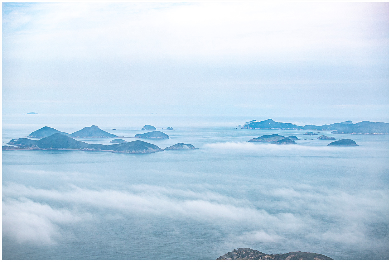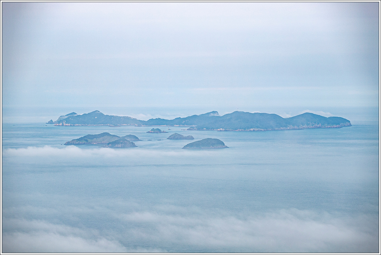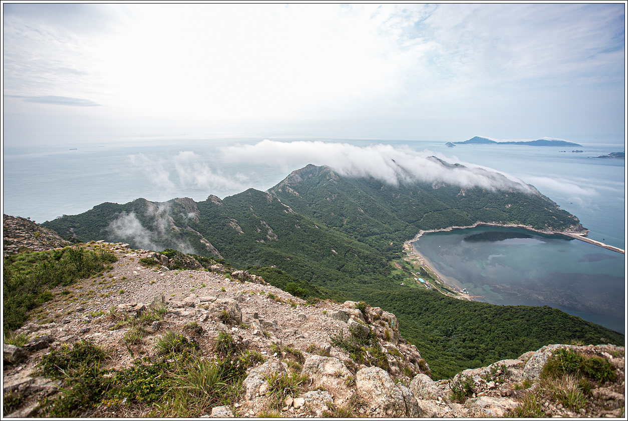 ▽ 오른쪽 멀리 굴업도, 가도, 가운데 각흘도가 구름층이 걷히면서 서서히 그 모습이 드러난다. 정상에서 구름이 다 걷힐 때까지 기다려 보기로 한다.