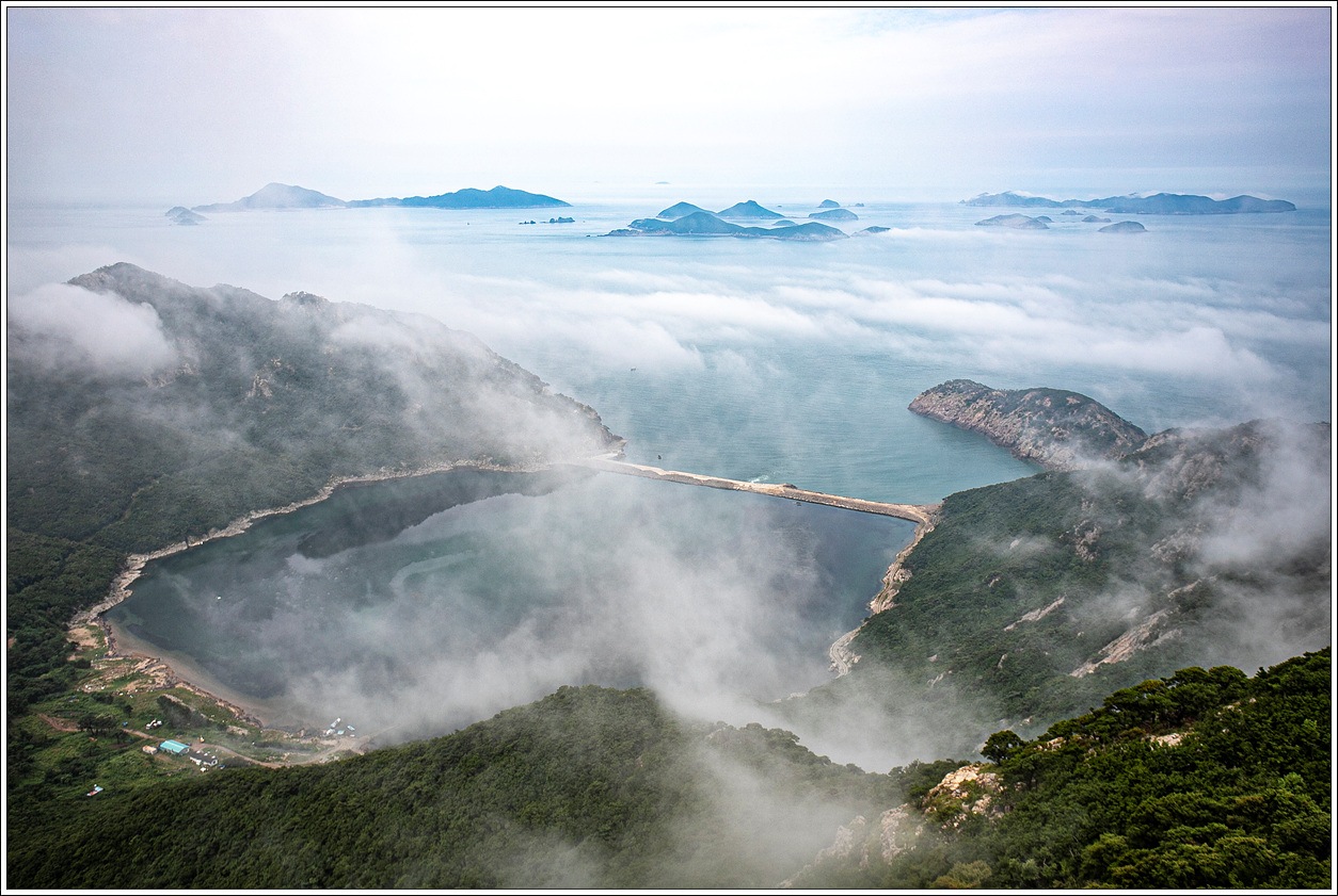 ▽ 아무것도 보이지 않았던 풍경이 구름층이 걷히면서 서서히 드러나는 옹진군의 섬들...