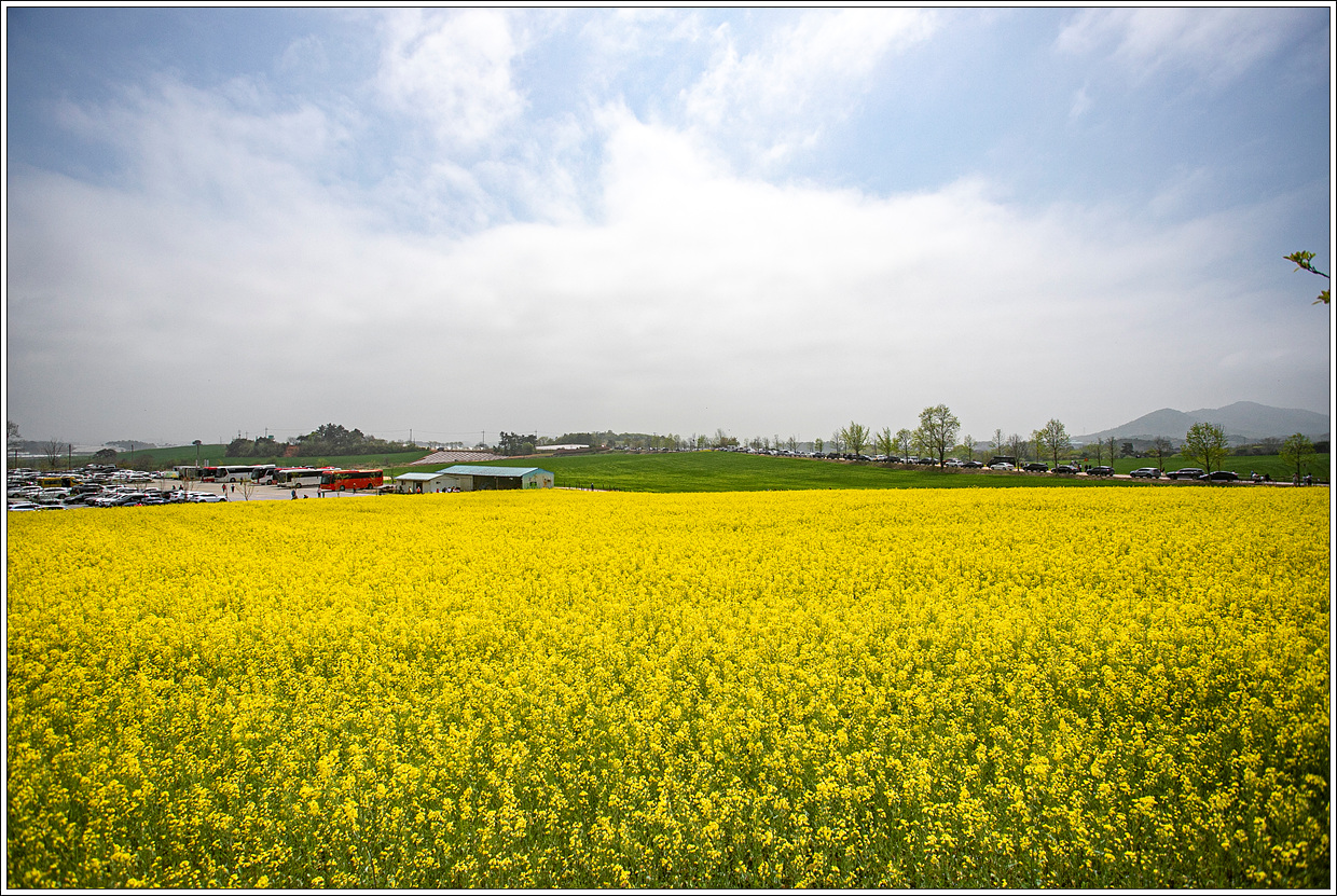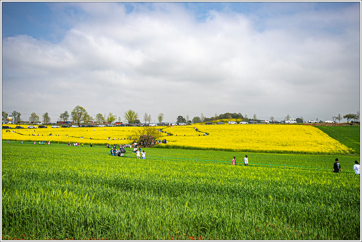▽ 도로에 나와 전경을 담아 보는데 보리밭 보다 이곳 유채꽃 밭에서 더 많은 사람들이 붐빈다.